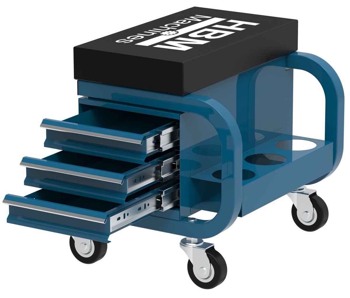 De HBM verrijdbare werkplaatsstoel met 3 laden blauw is de ideale combinatie van comfort en functionaliteit in de werkplaats. Dankzij de stevige zitting werk je ergonomisch en comfortabel, terwijl de 3 ruime laden voldoende opbergruimte bieden voor gereedschap en accessoires. De soepele zwenkwielen zorgen voor maximale mobiliteit, zodat je moeiteloos door de werkplaats of garage beweegt.