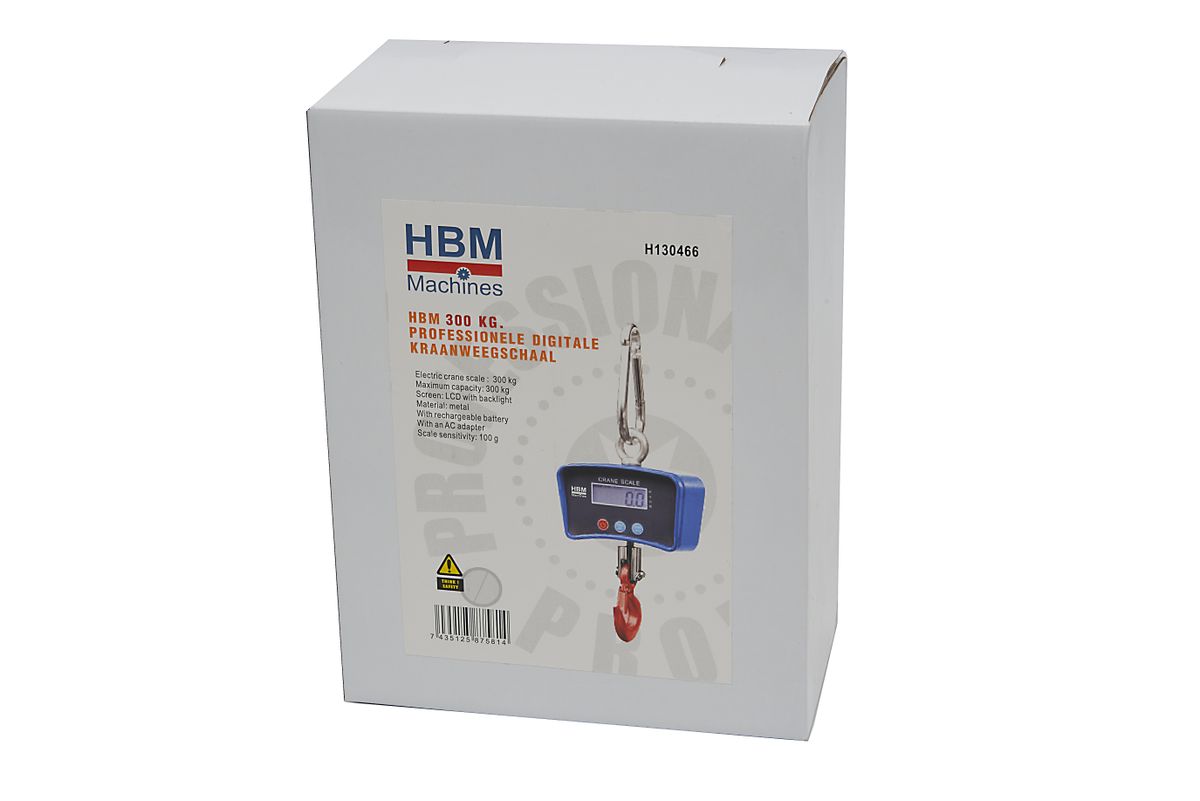 Deze hoogwaardige, elektronische kraanweegschaal is ideaal voor het wegen van zware ladingen. De HBM digitale kraanweegschaal heeft een weegcapaciteit van 300, 500 of 1000 kg, weegt met hoge precisie en nauwkeurige aflezing. De weegschaal heeft een helder LCD display en een 360° roterende haak. Het apparaat kan opgeladen worden middels de meegeleverde netadapter.