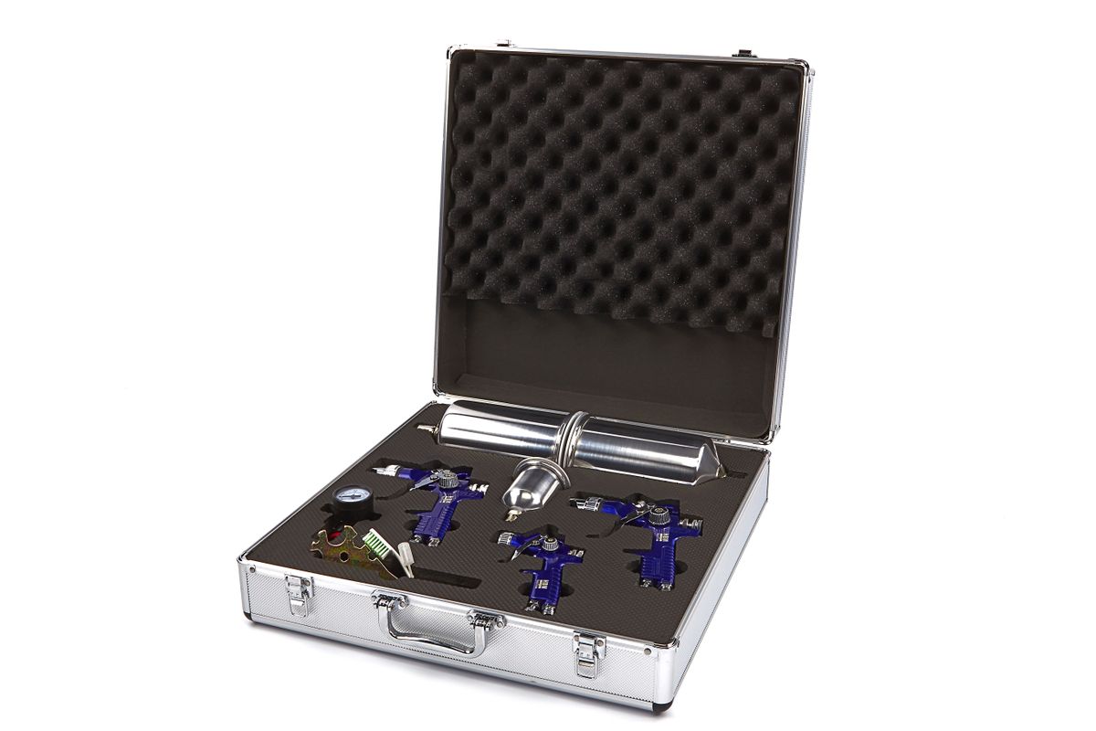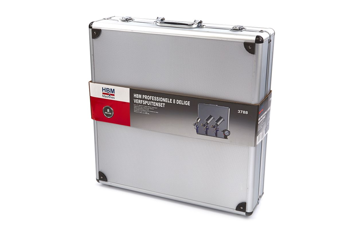 Elke professionele schilder of spuiter van auto’s, meubels of andere objecten zal goed met deze HBM professionele achtdelige verfspuitenset uit de voeten kunnen. Bij deze set zijn drie verfspuiten inbegrepen. Deze hebben verschillende nozzles en aluminium bekers in twee afzonderlijke maten. De hele set wordt geleverd in een luxueuze metalen koffer met handvat en kliksloten. Over de HBM professionele achtdelige verfspuiten set Met deze professionele set met verfspuiten kan je alle kanten op wanneer je een verfklus hebt. Pak kleine objecten aan met de verfspuit met 100 milliliter beker, of verf een hele schutting of kastenwand met een van de verfspuiten die een aluminium beker hebben met een inhoud van 1000 milliliter. Ook de openingen van de sproeiers zijn verschillend, zodat je zelf kunt kiezen voor een fijnere of grovere verdeling van de verf over je project. De hele set wordt geleverd in een luxe koffer van metaal. Je bewaart de set dus overzichtelijk.