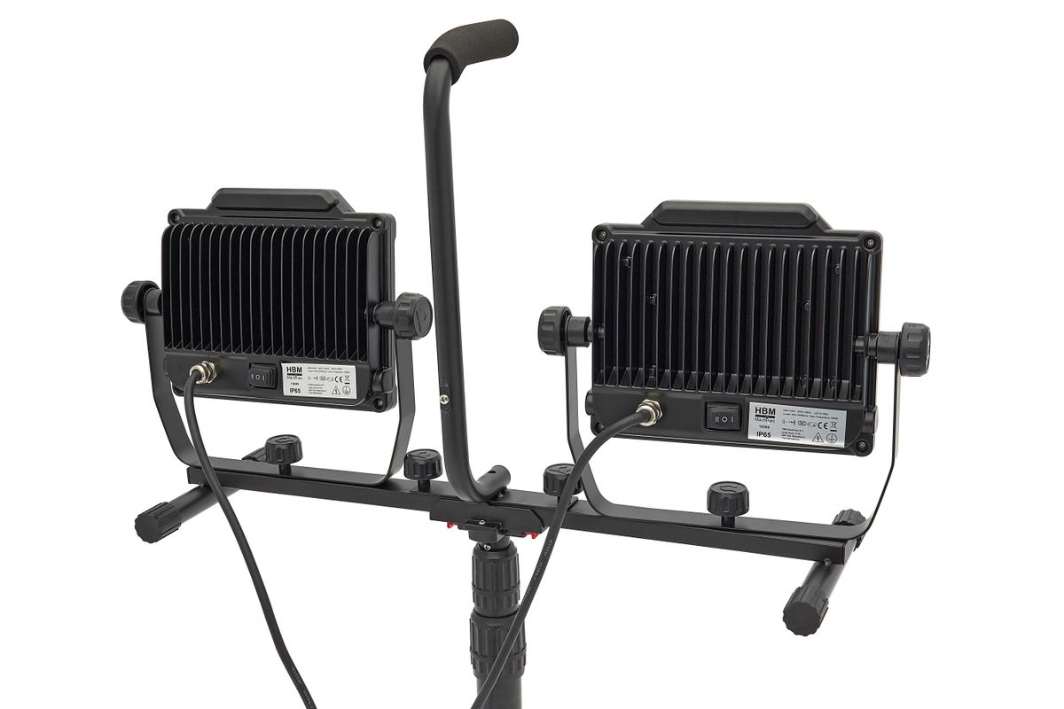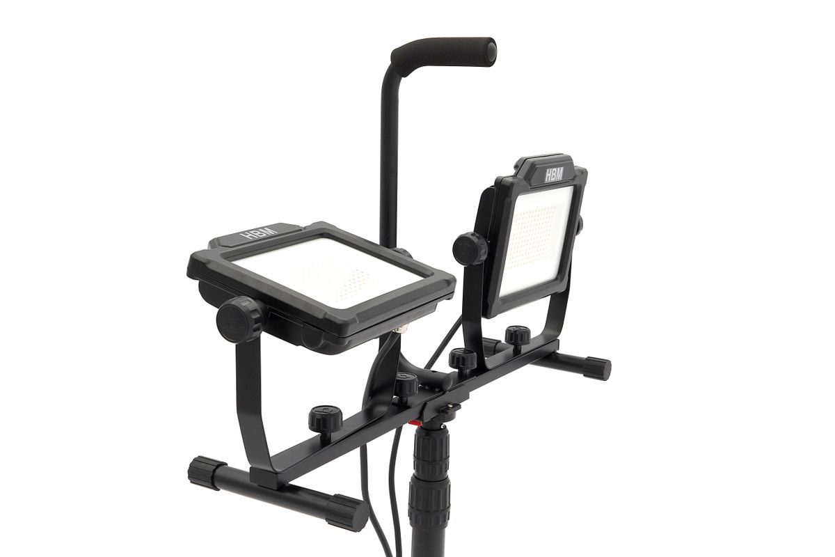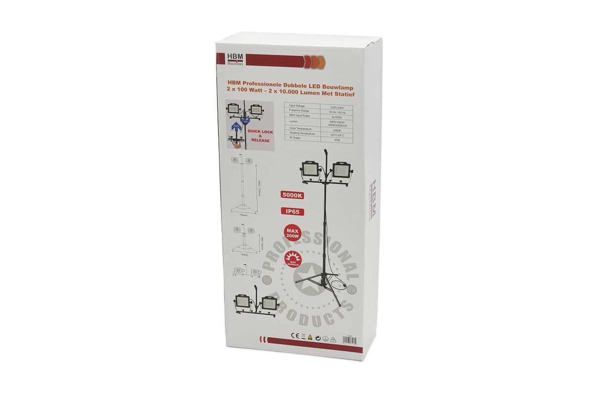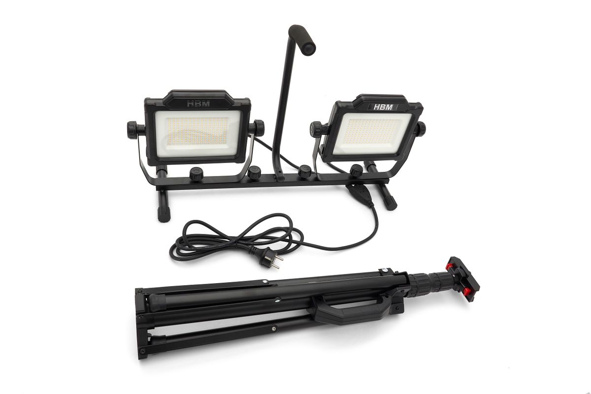 Nooit meer in het (half)donker bezig zijn met deze HBM professionele dubbele led bouwlamp met statief. Wanneer je bezig bent met een belangrijk project dan is goed licht een vereiste. Deze bouwlamp voldoet aan alle eisen om altijd goed te kunnen werken. De lampen hebben een kleurtemperatuur van 5000 Kelvin, dat gelijk staat aan koud daglicht. Over de HBM professionele dubbele led bouwlamp 2 x 100 watt – 2 x 10.000 lumen met statief Het grote voordeel van deze set met bouwlampen en statief is, dat je de ledlampen op de grond of een kast kunt zetten, maar dat je ze ook op een statief op iedere gewenste hoogte tot 1.70 meter kunt plaatsen. Bovendien kan je beide lampen afzonderlijk naar verschillende richtingen draaien. De lampen geven koud daglicht af, zodat je altijd werkt bij prettig licht.