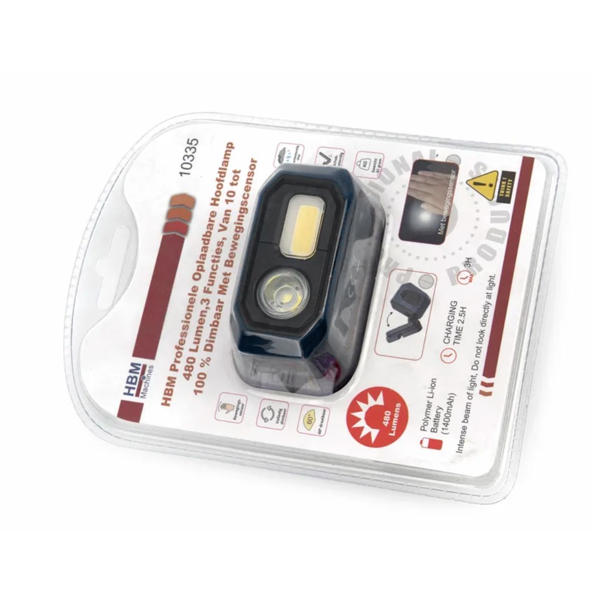 HBM Professionele Oplaadbare Hoofdlamp 480 Lumen, 3 Functies, Van 10 tot 100 % Dimbaar Met Bewegings