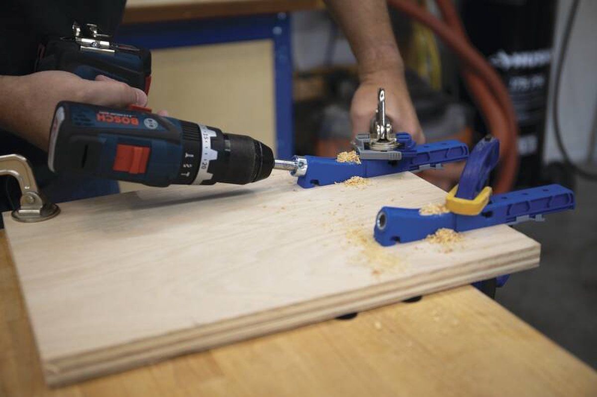 De Kreg® Pocket-Hole Jig 320 maakt het eenvoudiger dan ooit om doe-het-zelf houtprojecten te bouwen, of je nu bezig bent met je eerste doe-het-zelfproject of al jaren met hout werkt. De Kreg® Pocket-Hole Jig 320 werkt met materialen van 13 mm tot 38 mm dik. Het beschikt over twee boorgeleiders, een verwijderbare afstandhouder en diktestops voor materiaal van 13 mm, 19 mm en 38 mm, waardoor je de veelzijdigheid hebt om met planken en multiplex te bouwen. De bijgeleverde materiaaldiktemeter en eenvoudig in te stellen boor maken de installatie eenvoudig, terwijl de handige klembek en de GripMaxx™ antislipbasis de mal nauwkeurig op zijn plaats houden terwijl je elke keer perfect gepositioneerde pocket holes boort. De mal en de bijgeleverde onderdelen kunnen allemaal worden opgeborgen in een duurzame, compacte koffer waar zelfs ruimte is om Kreg® Pocket-Hole schroeven op te bergen. Duurzame constructie en geharde stalen geleiders zorgen ervoor dat de Kreg® Pocket-Hole Jig 320 jarenlang tevredenheid biedt bij het bouwen van projecten en het repareren van thuis.