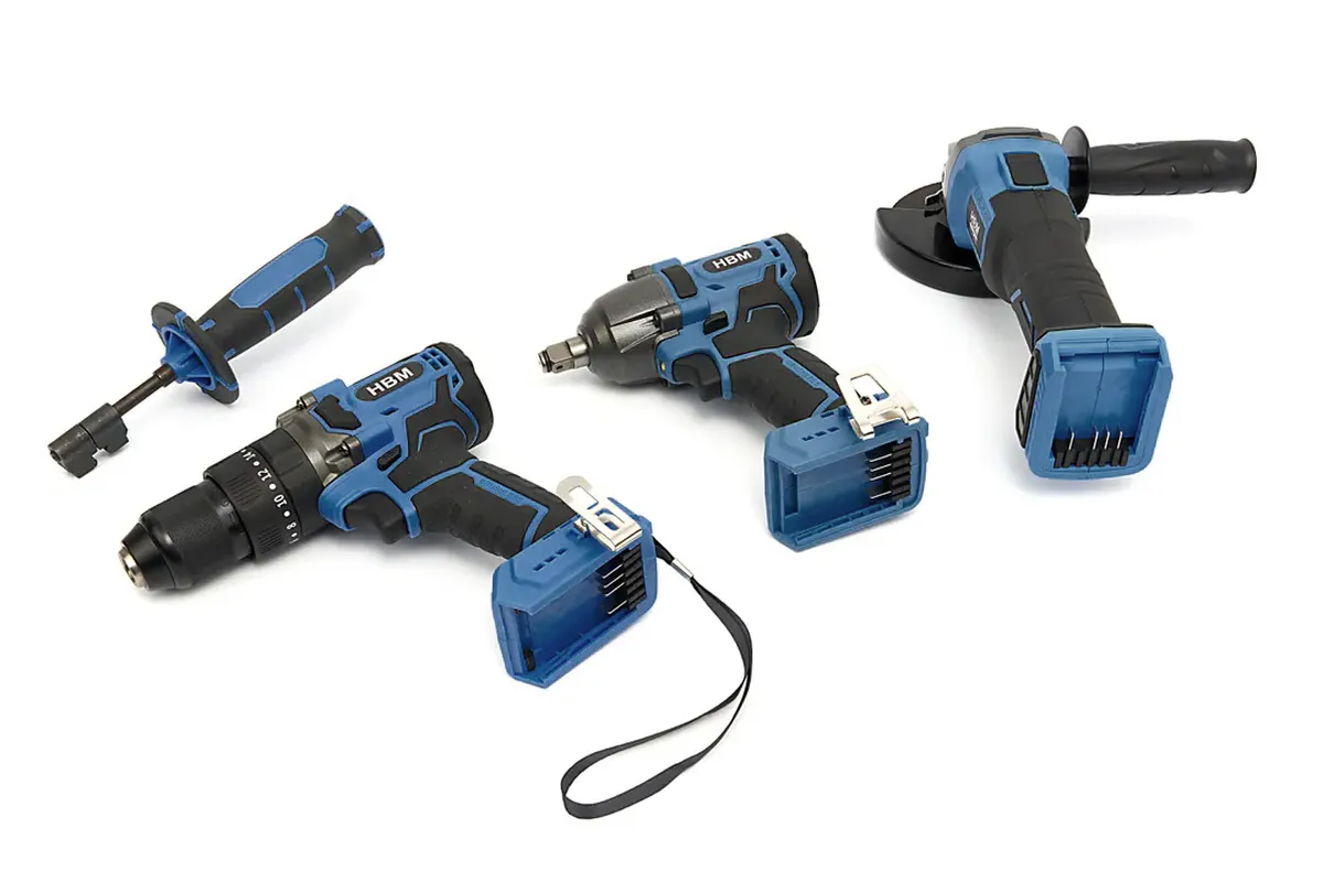 Of je nu een ervaren vakmens bent of graag zelf klust: met deze 3-delige HBM combiset ben je op alles voorbereid. De set bestaat uit een haakse slijper, een slagmoersleutel en een boormachine, allemaal snoerloos en voorzien van krachtige 20V 5.0Ah accu’s. Zo werk je met maximale bewegingsvrijheid aan allerlei klussen. De machines liggen stevig in de hand dankzij het ergonomische ontwerp en bieden controle bij elke beweging. Alles wordt geleverd in een handige draagtas. De tools maken deel uit van het HBM Power20.5 platform, waarbij accu’s en laders onderling uitwisselbaar zijn.