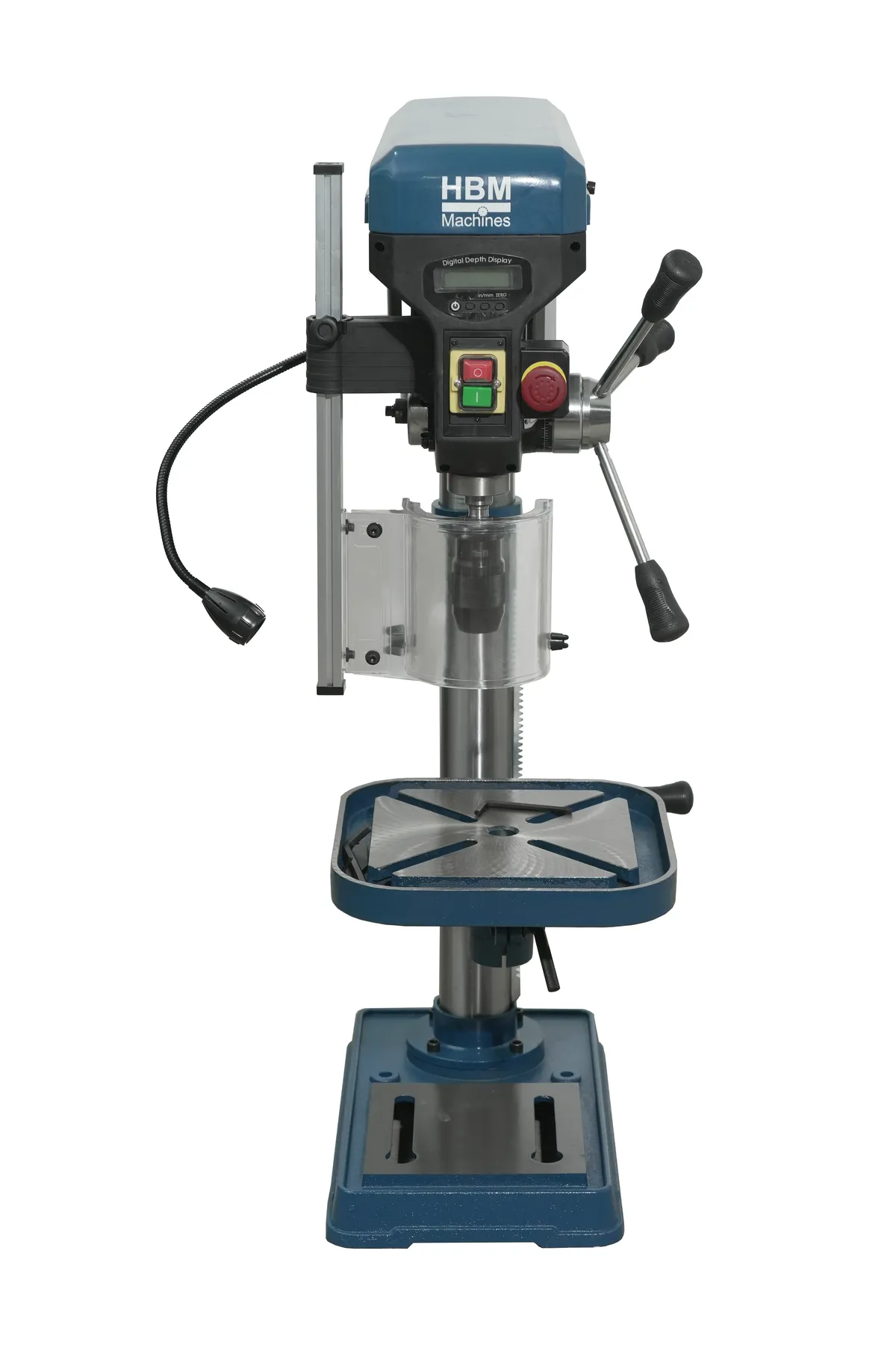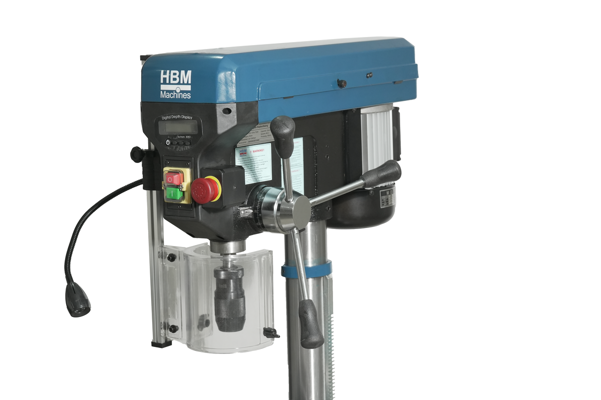 De HBM 25 mm professionele kolomboormachine met digitale diepte-uitlezing is een zeer complete set met alle onderdelen om in je werkplaats goed werk te kunnen verrichten. Deze kolomboormachine wordt geleverd, inclusief een arbo/ce goedgekeurde beschermkap, snelspanboorkop met stift, digitale diepte uitlezing, een kantelbare werktafel, diepte aanslag en uitdrijfspie. Dankzij de ingebouwde ledlamp heb je altijd goed zicht. Over de HBM 25 mm professionele kolomboormachine met digitale diepte uitlezing Deze professionele kolomboormachine hoort thuis in de werkplaats van elke professional die boorwerkzaamheden verricht. Met alle nodige onderdelen en accessoires heb je een complete kolomboormachine van hoge kwaliteit in huis.