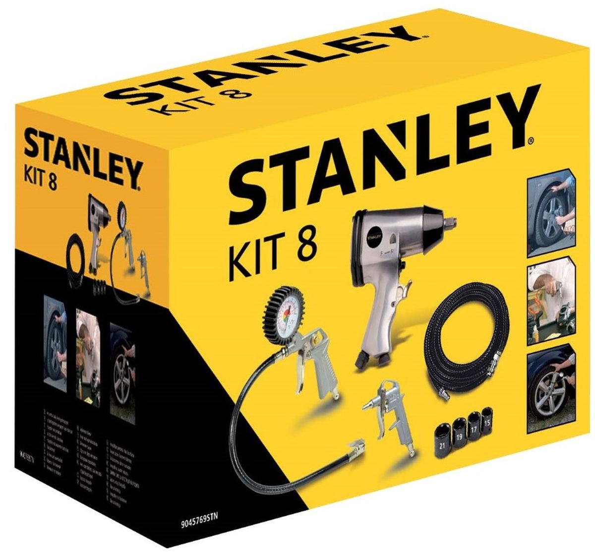 Of je nu banden wisselt, onderdelen schoonblaast of bandenspanning controleert – met deze complete luchtset van Stanley werk je snel, krachtig en efficiënt. De set bevat een krachtige slagmoersleutel, vier dopsleutels, een blaaspistool, bandenpomp met manometer én een 10 meter luchtslang. Perfect voor in de garage of werkplaats.