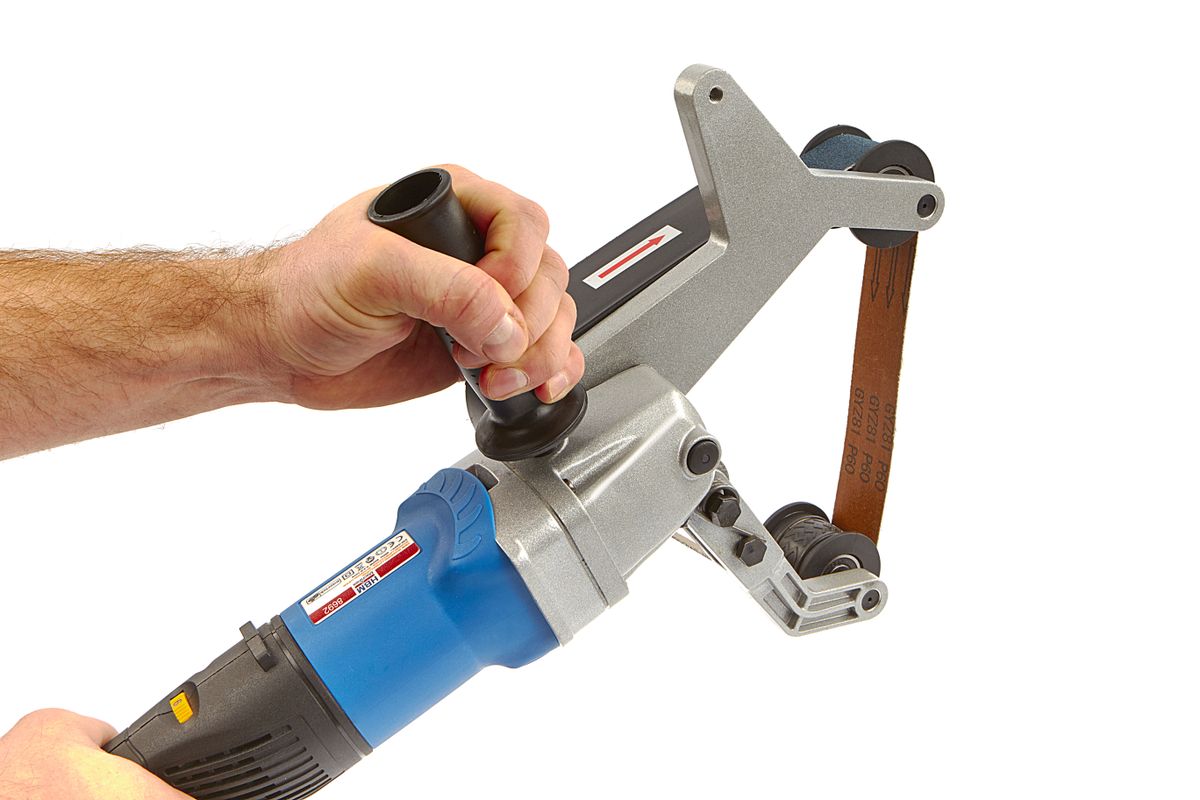 Deze HBM buisbandschuurmachine is ideaal voor het verwijderen van roest en corrosie van buizen. Ook voor het schuren van lasnaden en satineren wordt een rondschuurmachine veel ingezet. De aandrijfrollen verhinderen dat de schuurbanden wegglijden. De handgreep kan op verschillende posities aan de machine bevestigd worden. Zo heb je, afhankelijk van het werkstuk en de beschikbare ruimte, altijd de beste werkpositie. Dankzij de bewegende arm kan de schuurband de buis tot 270° omvatten. Zo kun je in slechts twee stappen een 360° bewerking uitvoeren. Overige specificaties van de HBM Buizenslijpmachine , Rondslijpmachine, Buizenslijper Aandrijfrollen verhinderen het wegglijden van de slijpbanden en zorgen zo voor een efficiënt resultaat. Optimale geleiding van het toestel door smalle greep omtrek en bijzonder ergonomische greep positie.Veelzijdige slijpposities door zwenkbare handgreep – vooral om langs de wand te slijpen. Hoge omslaghoek van de buis tot 270° maakt een 360°-bewerking van de buis in slechts twee stappen mogelijk.