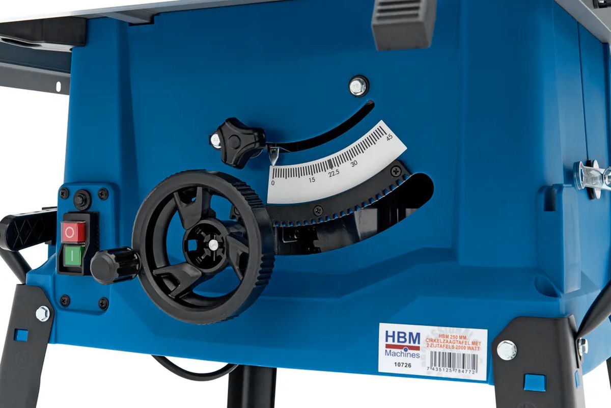 Deze cirkelzaagtafel is uitgevoerd met een vergroting van de zaagtafel aan de achterzijde en aan de twee zijkanten. Deze zaagtafel extensies bieden ondersteuning aan de bredere en langere werkstukken, wat maken het zagen hiervan een stuk makkelijker maakt.Desondanks is deze cirkelzaagmachine zeer licht en daardoor zeer geschikt om mee te nemen naar een klus. De 2000 Watt motor is zeer krachtig en ruim in staat is om moeiteloos tot een diepte van zo’n 70 mm te zagen in iedere houtsoort. De extra brede en lange zaagtafel en de extra steunpoten aan de achterzijde, maakt de machine zeer geschikt voor het zagen van platen. De langsgeleider kan aan beide zijden van het zaagblad worden gebruikt en kan rechtop of liggend worden gemonteerd. Schuinstelling en zaagdiepte kunnen snel worden ingesteld met een handwiel onder de tafel. Een duwstok en sleutels zijn meegeleverd en kunnen aan de zaagmachine worden gemonteerd zodat alles bij elkaar blijft. Dat maakt deze cirkelzaagtafel zeer geschikt voor de mobiele klusser, maar ook voor de houtbouwer met weinig ruimte, die de zaagtafel makkelijk buiten de te kleine werkplaats moet kunnen neerzetten.