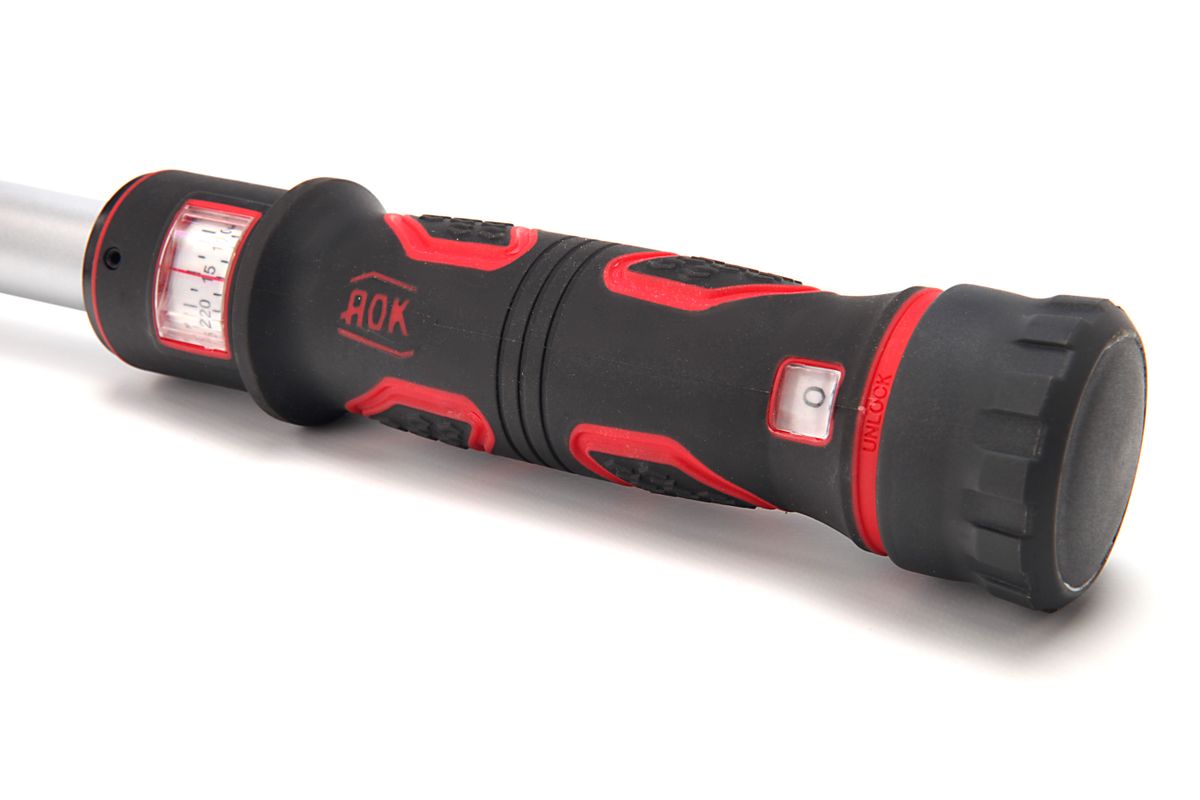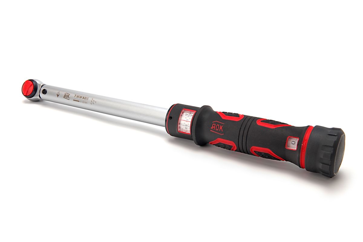 De AOK 3/8 inch momentsleutel met een bereik van 10 tot 60 Nm en een lengte van 410 mm biedt een goede combinatie van kracht en precisie. Dankzij de extra lengte kun je met minder inspanning het gewenste koppel bereiken. De schaalverdeling is duidelijk afleesbaar en het klikmechanisme waarschuwt wanneer het ingestelde moment bereikt is. Ideaal voor werkzaamheden aan fietsen, motoren en machines waar nauwkeurigheid telt. De antisliphandgreep zorgt voor comfort en controle tijdens het gebruik. De sleutel wordt geleverd in een stevige opbergkoffer, zodat hij veilig en overzichtelijk opgeborgen blijft na iedere klus.