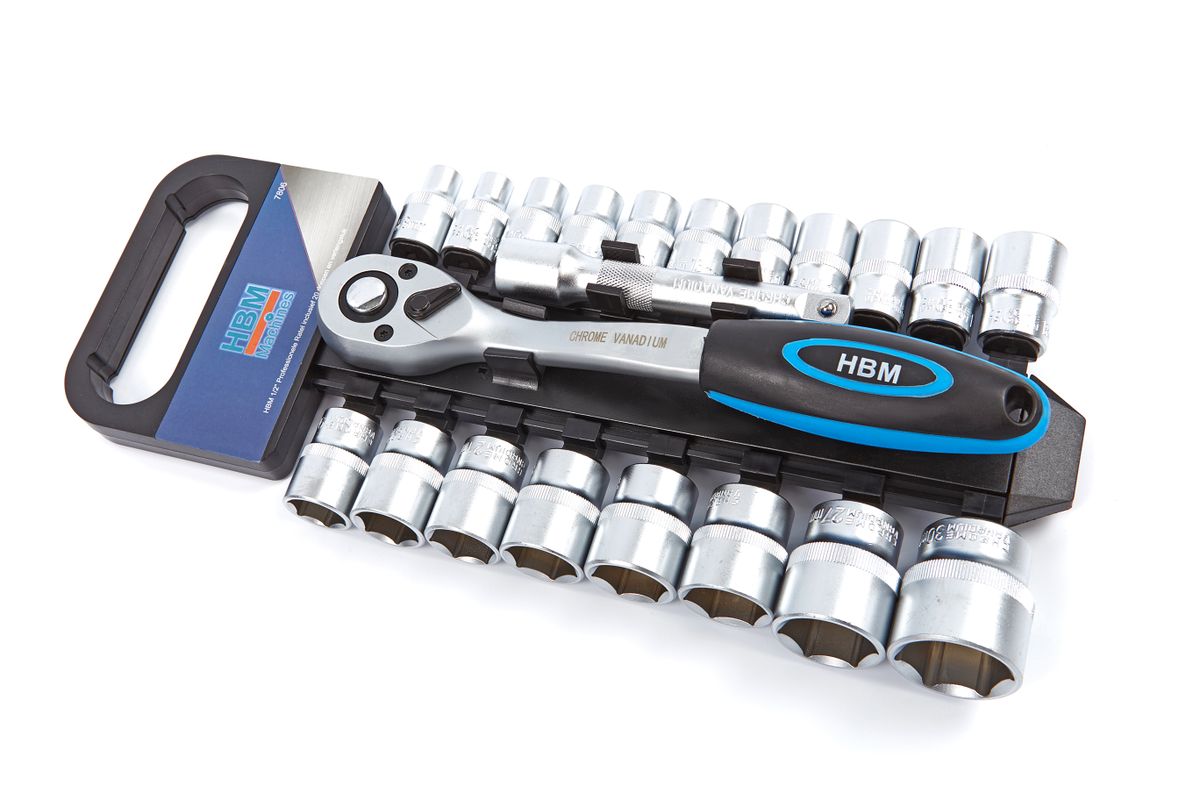 HBM 1/2 inch Professionele Ratel inclusief 19 doppen en verlengstuk