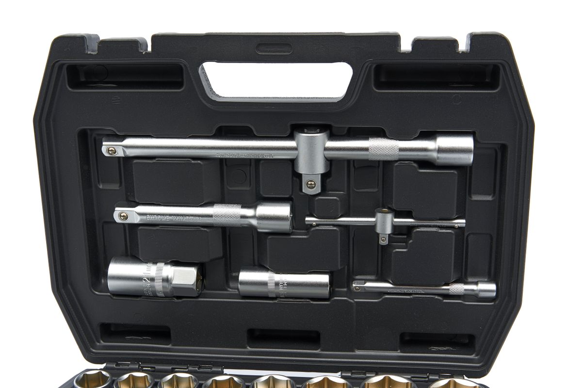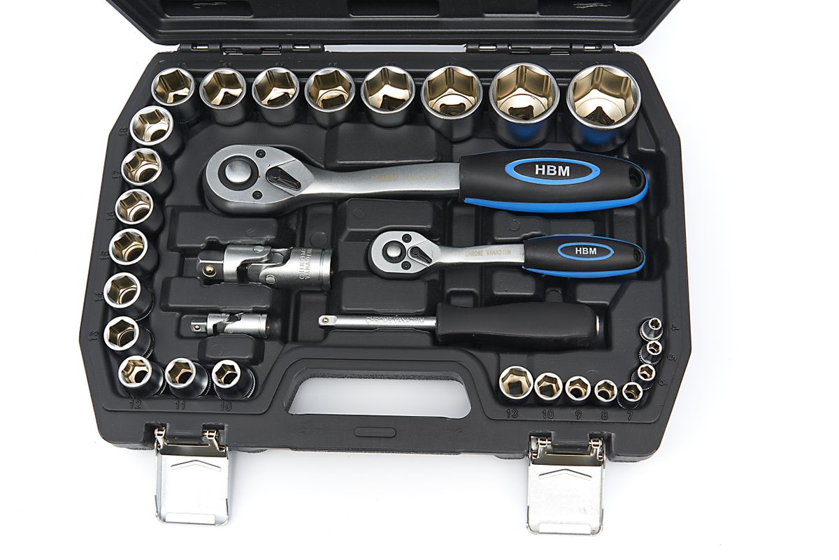 Ontdek de veelzijdigheid van de HBM 37-delige doppenset. Deze set bevat een uitgebreid assortiment aan dopsleutels en accessoires om vrijwel elke klus aan te kunnen. Met maar liefst 8 1/4 dopsleutels variërend van 4 tot 13 mm en 17 1/2 dopsleutels van 10 tot 32 mm, ben je altijd voorbereid op elke maat bout of moer. De set wordt geleverd met handige extra’s zoals verlengstukken, een T-greep, een ratelhandvat en een universele koppeling, waardoor je elke klus met gemak aankan. Gemaakt van duurzaam CR-V staal, kun je vertrouwen op de kwaliteit en betrouwbaarheid van deze set voor al je werkzaamheden.