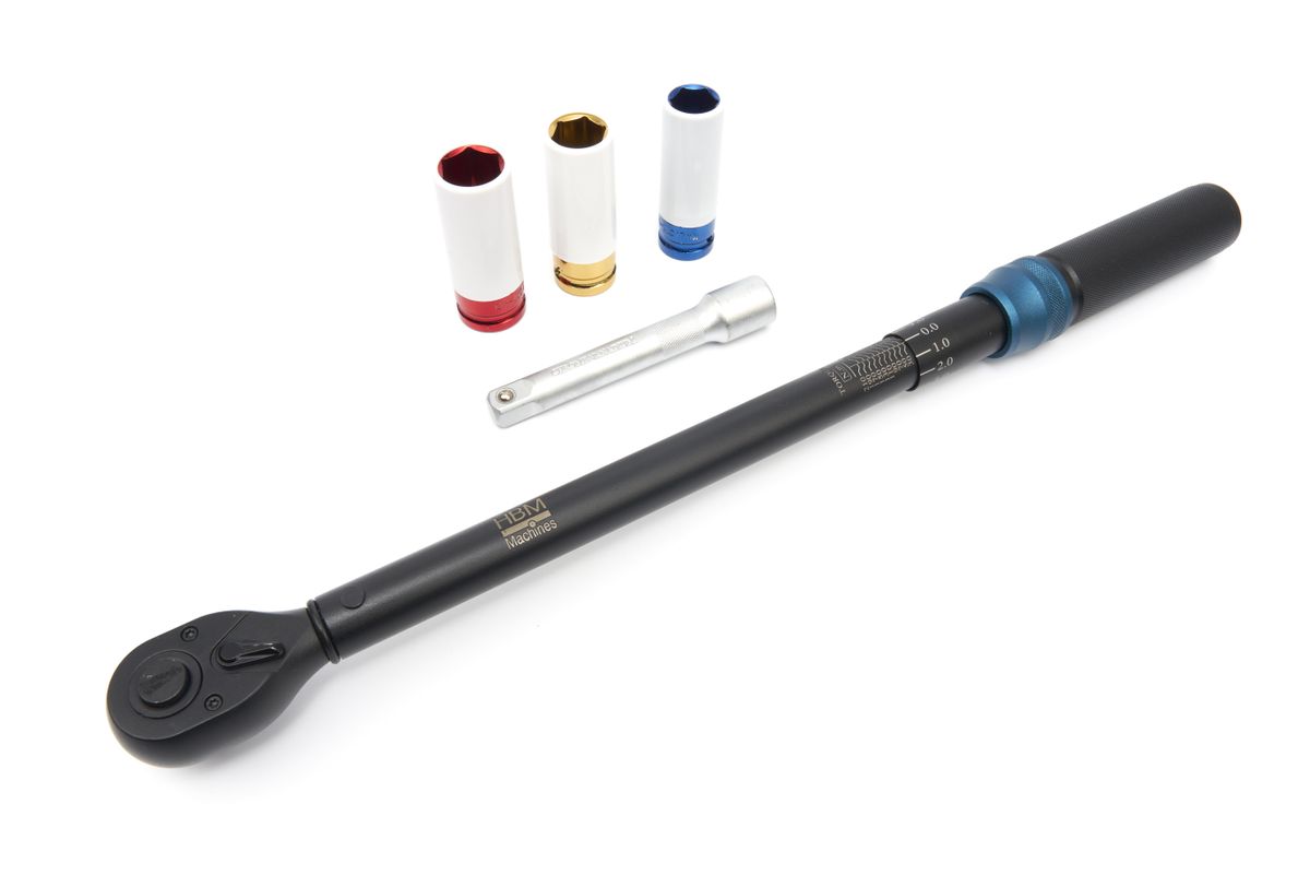 De HBM 5-delige momentsleutelset is ideaal voor nauwkeurig aandraaien van wielmoeren, bouten en andere verbindingen. De 1/2 inch momentsleutel heeft een instelbaar bereik van 20 tot 210 Nm en is voorzien van een duidelijke schaal en klikmechanisme. In de set zitten drie doppen (17, 19 en 21 mm) en een verlengstuk van 5 inch, waarmee je ook moeilijk bereikbare plekken goed kunt benaderen. Alles wordt geleverd in een stevige kunststof opbergkoffer. Of je nu aan auto’s, aanhangwagens of machines werkt, met deze set werk je snel, veilig en gecontroleerd. Een betrouwbare oplossing voor iedereen die met precisie en kracht wil sleutelen.