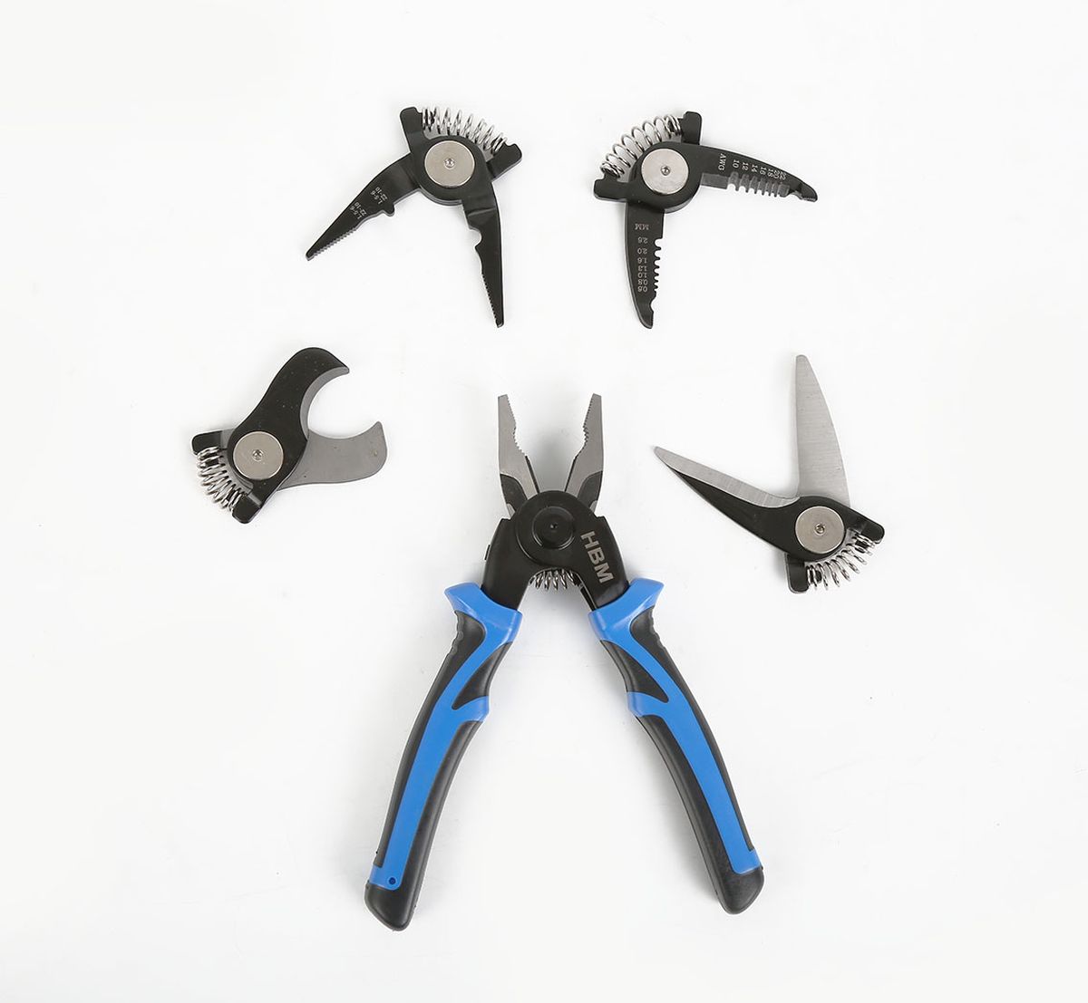 Ontdek de veelzijdigheid van de HBM 5-in-1 tang met verwisselbare kop. Deze unieke tang biedt vijf functionaliteiten in één handig gereedschap. Met hoogwaardige kwaliteitsonderdelen zoals carbon staal en 4CR13 legering, biedt het duurzaamheid en betrouwbaarheid voor al je klussen. Van kabelknippen en draad strippen tot krimpen en zelfs het gebruik van een schaar, deze tang is jouw alles-in-één oplossing. Met zijn verwisselbare kop ben je altijd klaar voor elke taak, waardoor dit gereedschap een onmisbare aanwinst is voor elke gereedschapskist.