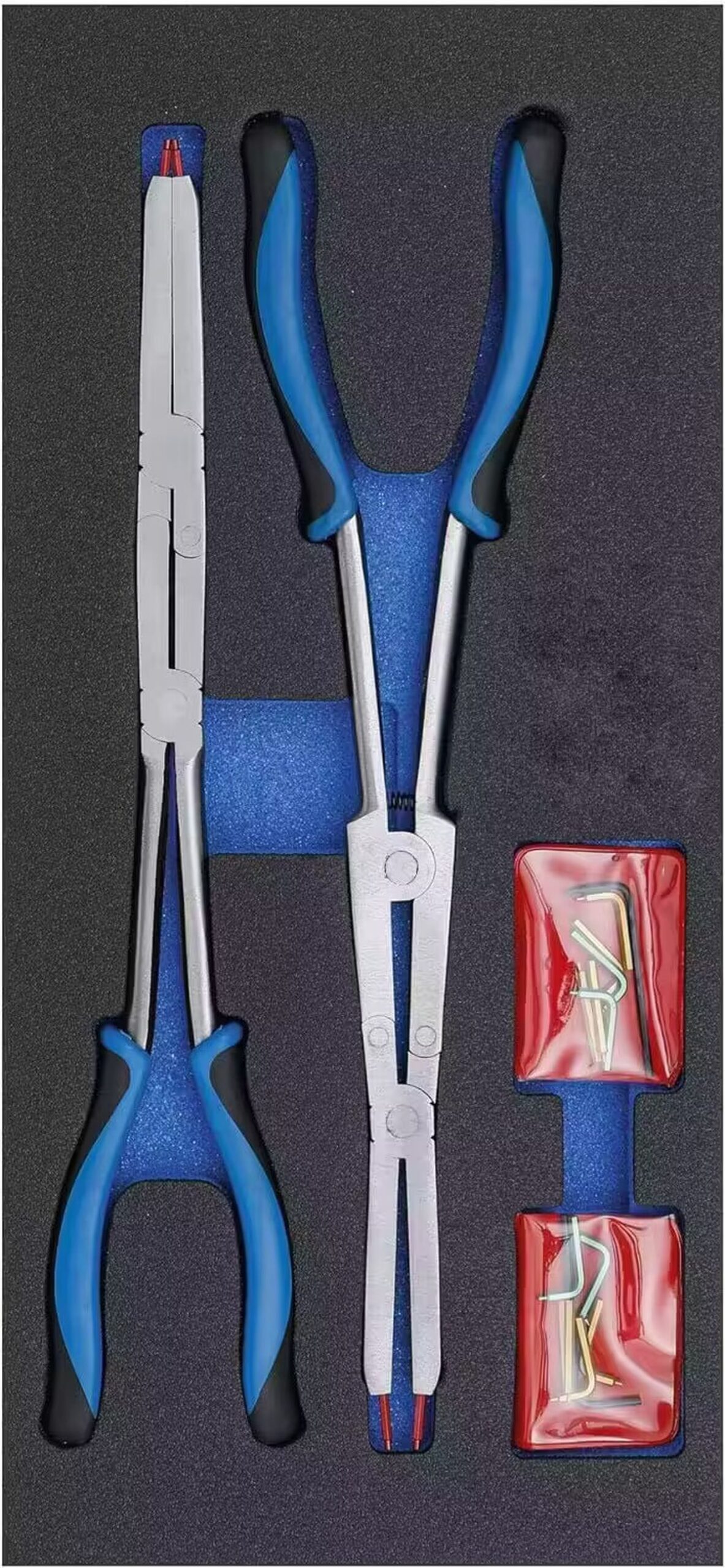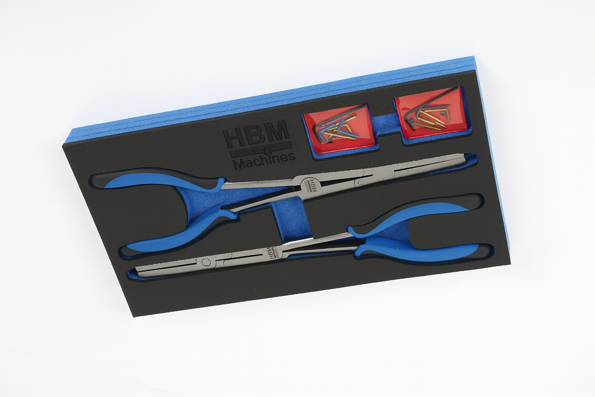 De HBM borgveertrangenset van 345 mm is ontworpen voor nauwkeurig werk aan borgringen. Dankzij de dubbele scharnierconstructie wordt de bewegingsvrijheid bij de bek aanzienlijk vergroot, wat meer controle biedt bij fijnafstellingen. De set is geschikt voor zowel externe borgringen van Ø 12 – 30 mm als interne borgringen van Ø 8 – 30 mm. De puntwissel is eenvoudig uit te voeren, zodat je snel schakelt tussen toepassingen. Deze praktische set biedt betrouwbaarheid en flexibiliteit bij uiteenlopende werkzaamheden.
