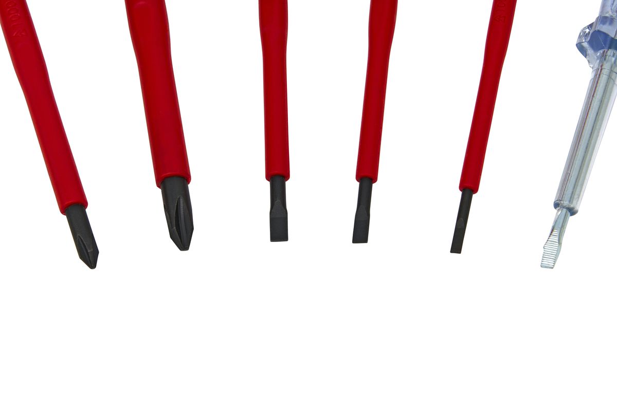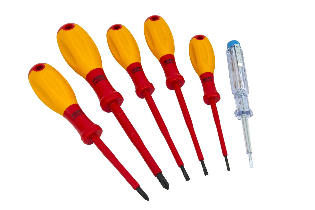 De Hazet VDE schroevendraaierset 6-delig is ideaal voor veilig en nauwkeurig werken aan elektrische installaties. Dankzij de beschermende isolatie tot 1000 V en de ergonomische rood-gele 2-componenten greep biedt deze set zowel maximale veiligheid als optimaal comfort. De set bevat sleuf- en Phillips-schroevendraaiers, inclusief een spanningstester (220-250 V)