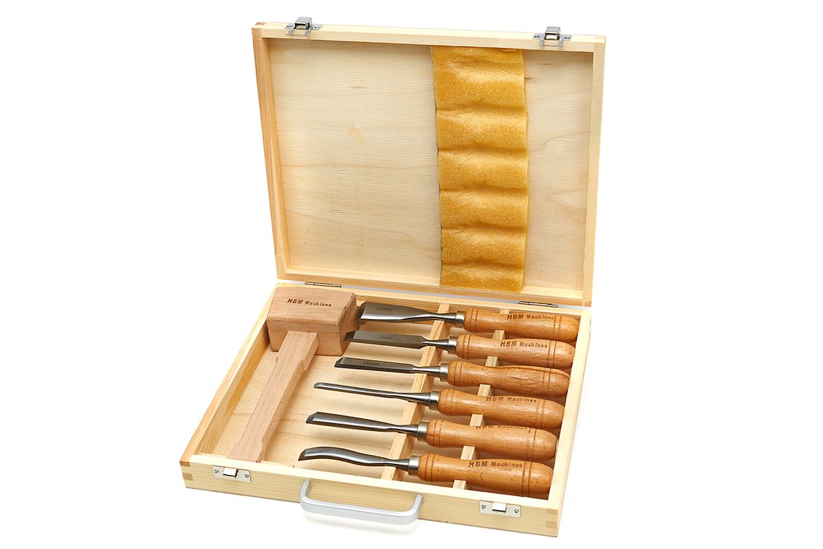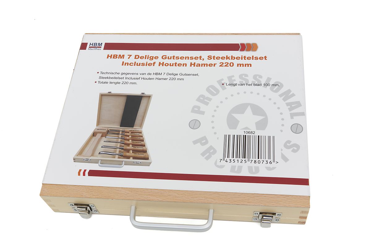 Met deze set hoogwaardige beitels bewerk je verschillende soorten oppervlakken snel, veilig en nauwkeuriger. De set beschikt over verschillende beitels in uiteenlopende maten, voor meer flexibiliteit. Ook krijg je er een houten hamer bij, waardoor je nauwkeuriger en professioneler werkt. De beitels zijn stuk voor stuk scherp en erg comfortabel in gebruik. De HBM 7 Delige Gutsenset, Steekbeitelset Inclusief Houten Hamer 215 mm wordt geleverd met een handige houten koffer, zodat je alles veilig en schoon kunt opbergen.