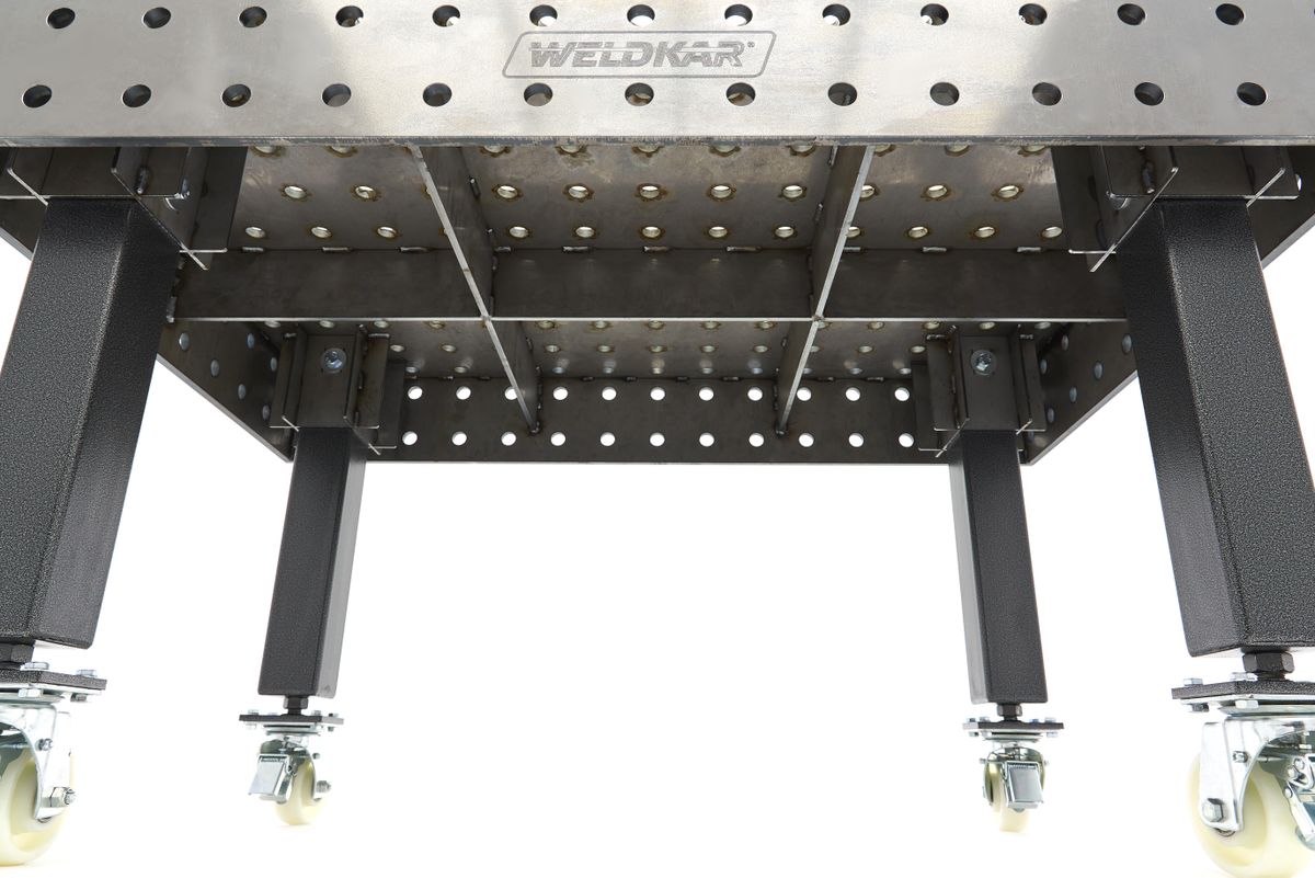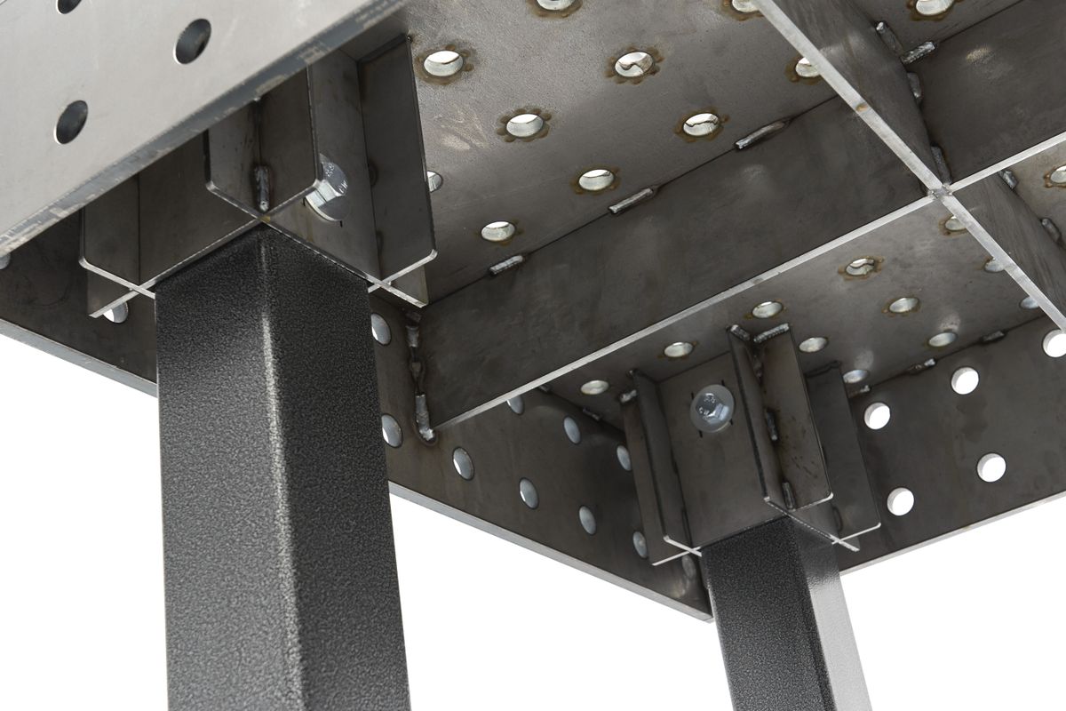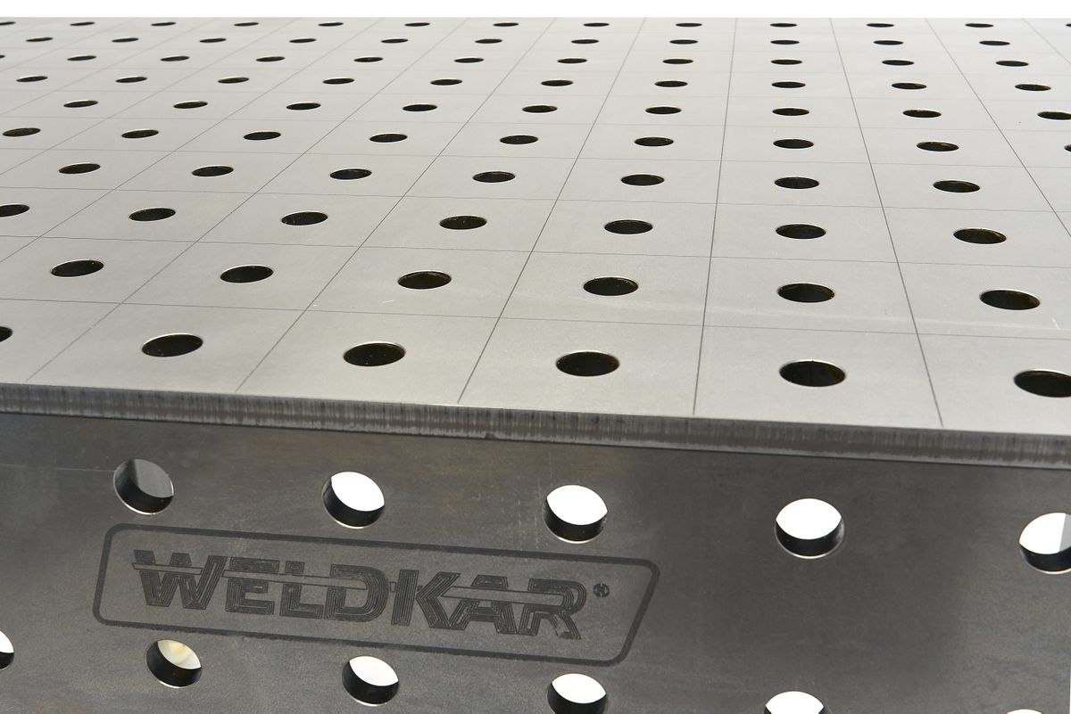 Op zoek naar een professionele lastafel voor al je laswerk? De Weldkar lastafels van Weldkar zijn de ideale oplossing. Deze tafels zijn vervaardigd uit hoogwaardig staal (type S355J2+N), wat zorgt voor uitstekende belastbaarheid. Of je nu licht of zwaar werk moet verrichten, deze lastafels kunnen het aan.De lastafels zijn voorzien van een Ø 28 mm booringsysteem, waardoor ze compatibel zijn met veel gebruikte opspangereedschappen. Hierdoor verbeter je de productiviteit en kun je gemakkelijk lasconstructies in hun uiteindelijke vorm opspannen voor nauwkeurige lassen.Met bescherming tegen lasspetters dankzij een anti-hecht spray en conformiteit met de norm ISO 2768-1, bieden deze lastafels de beste kwaliteit. De 100 mm boorrasters (Ø 28 mm systeem) zijn perfect afgestemd op de sleuven van de bouwdelen, en de stabiele, massieve bouw garandeert vakmanschap van het hoogste niveau.