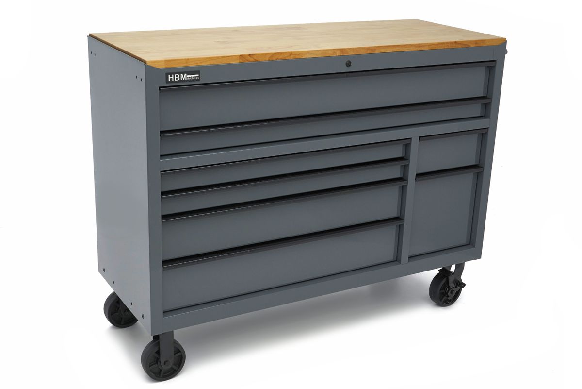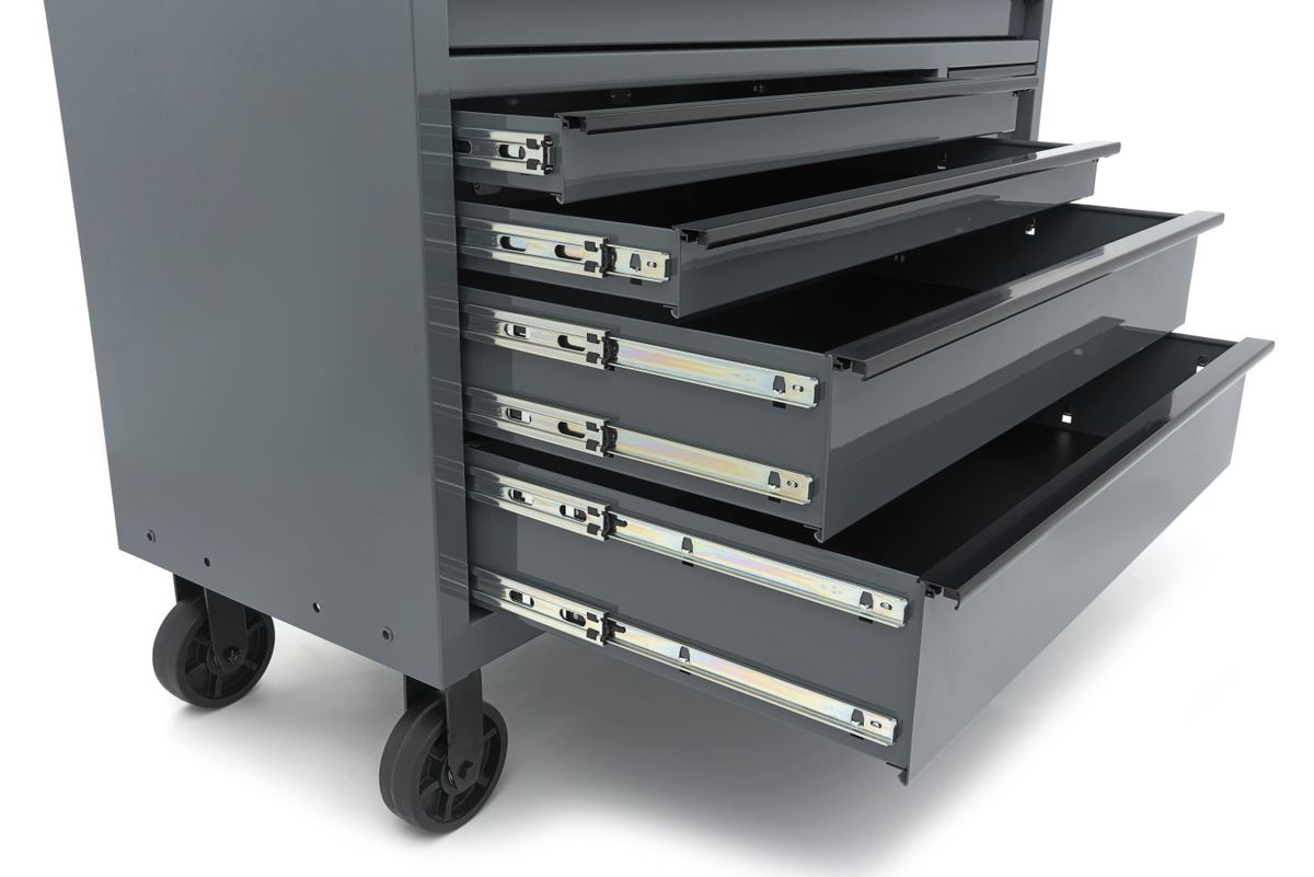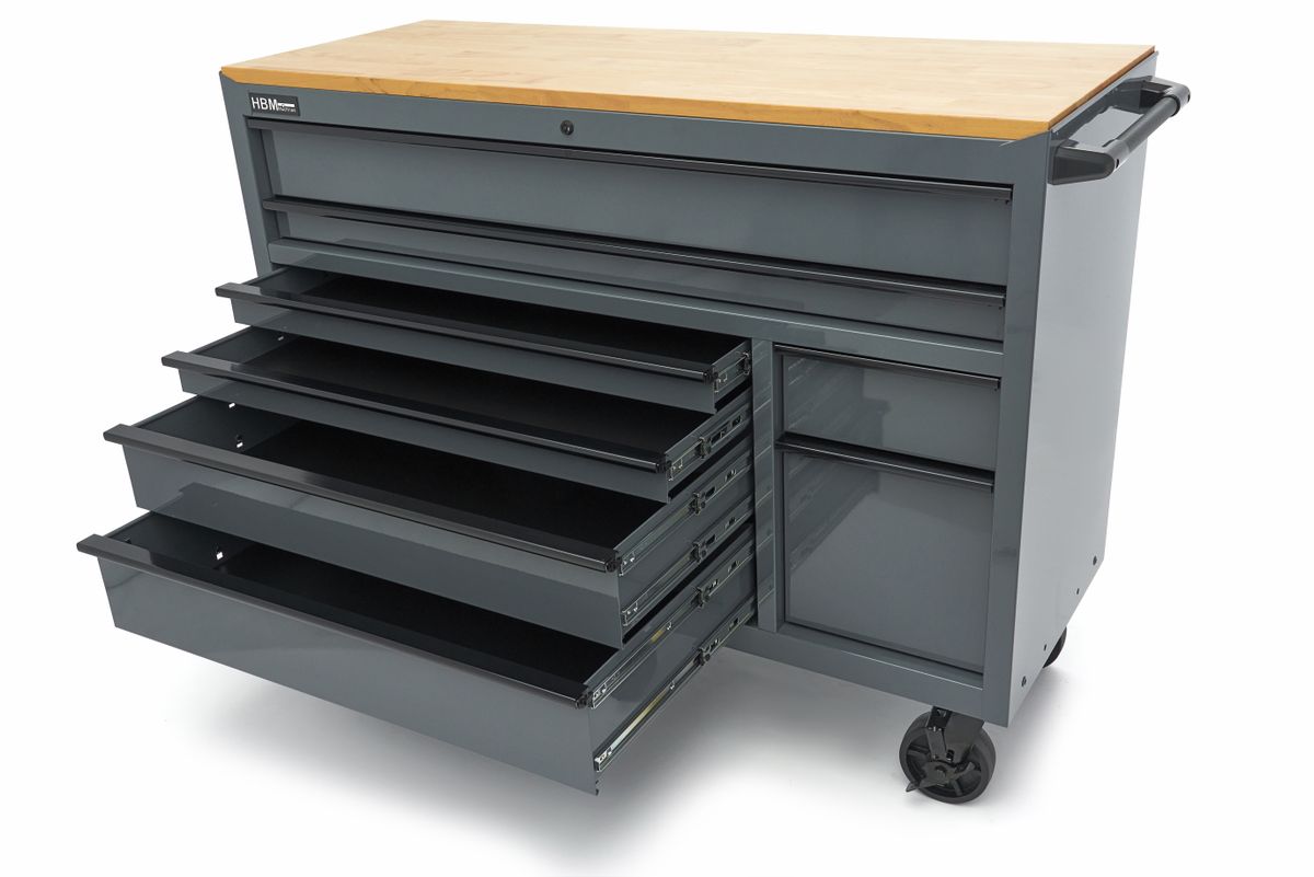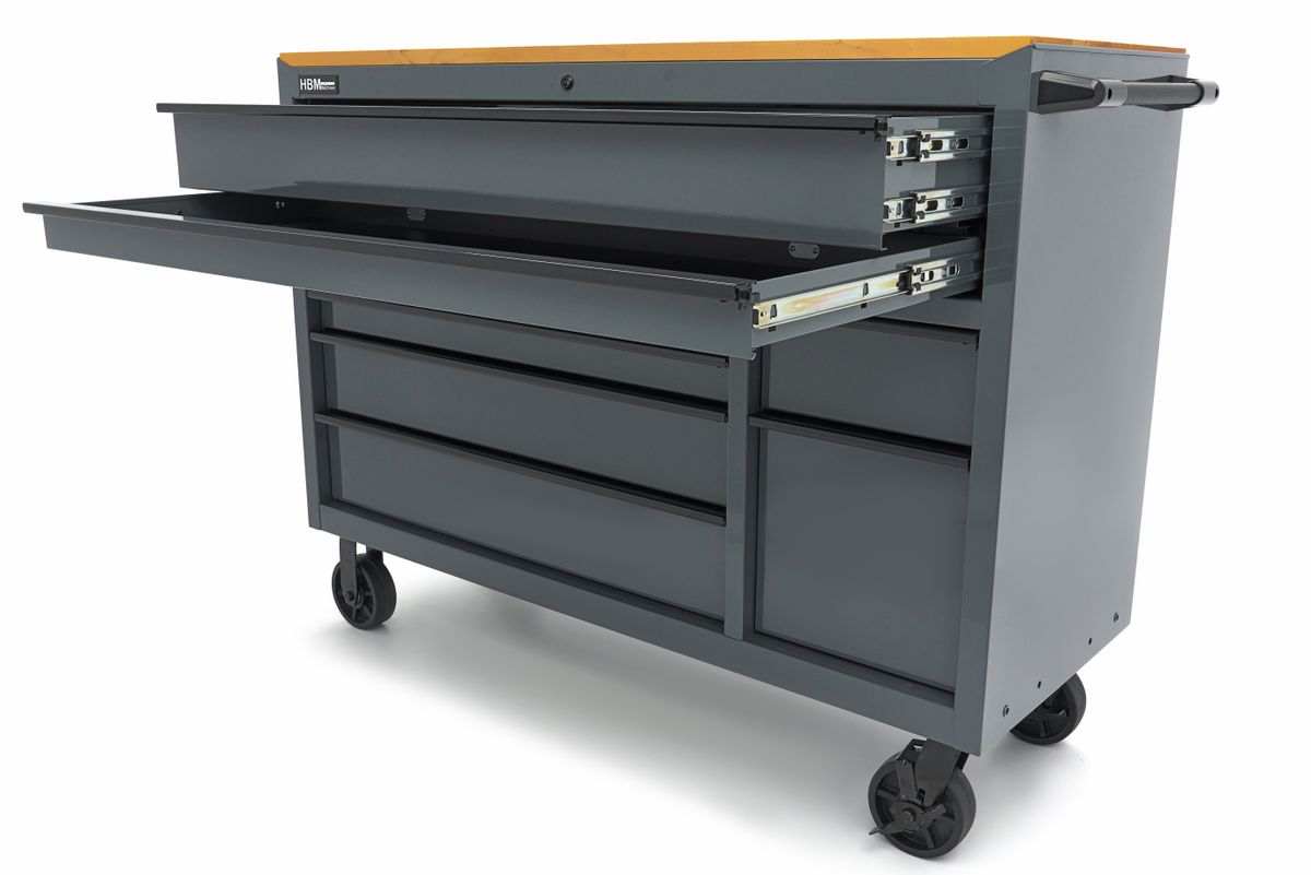De verrijdbare gereedschapswagen die je in staat stelt overal te werken, ongeacht of je een professional bent of een enthousiaste doe-het-zelver. Dat is wat de HBM 142 cm Gereedschapswagen voor je heeft. Deze multifunctionele gereedschapswagen maakt het eenvoudig om flexibel te werken en klusjes op locatie uit te voeren. Met 8 laden in verschillende maten, heb je al je gereedschap en onderdelen netjes georganiseerd en altijd binnen handbereik. Het stevige bovenblad van deze gereedschapswagen biedt een duurzaam werkoppervlak en zorgt voor een solide basis voor al je klussen. Of je nu fijn werk doet of grotere projecten aanpakt, je kunt altijd rekenen op een betrouwbaar werkoppervlak. Het veelzijdige ladenblok biedt een ideale opbergoplossing voor al je gereedschap. Je raakt zelfs de kleinste schroefjes niet meer kwijt. Alle laden kunnen volledig worden uitgeschoven, wat betekent dat je elke centimeter kunt benutten en altijd overzichtelijk en efficiënt kunt werken.