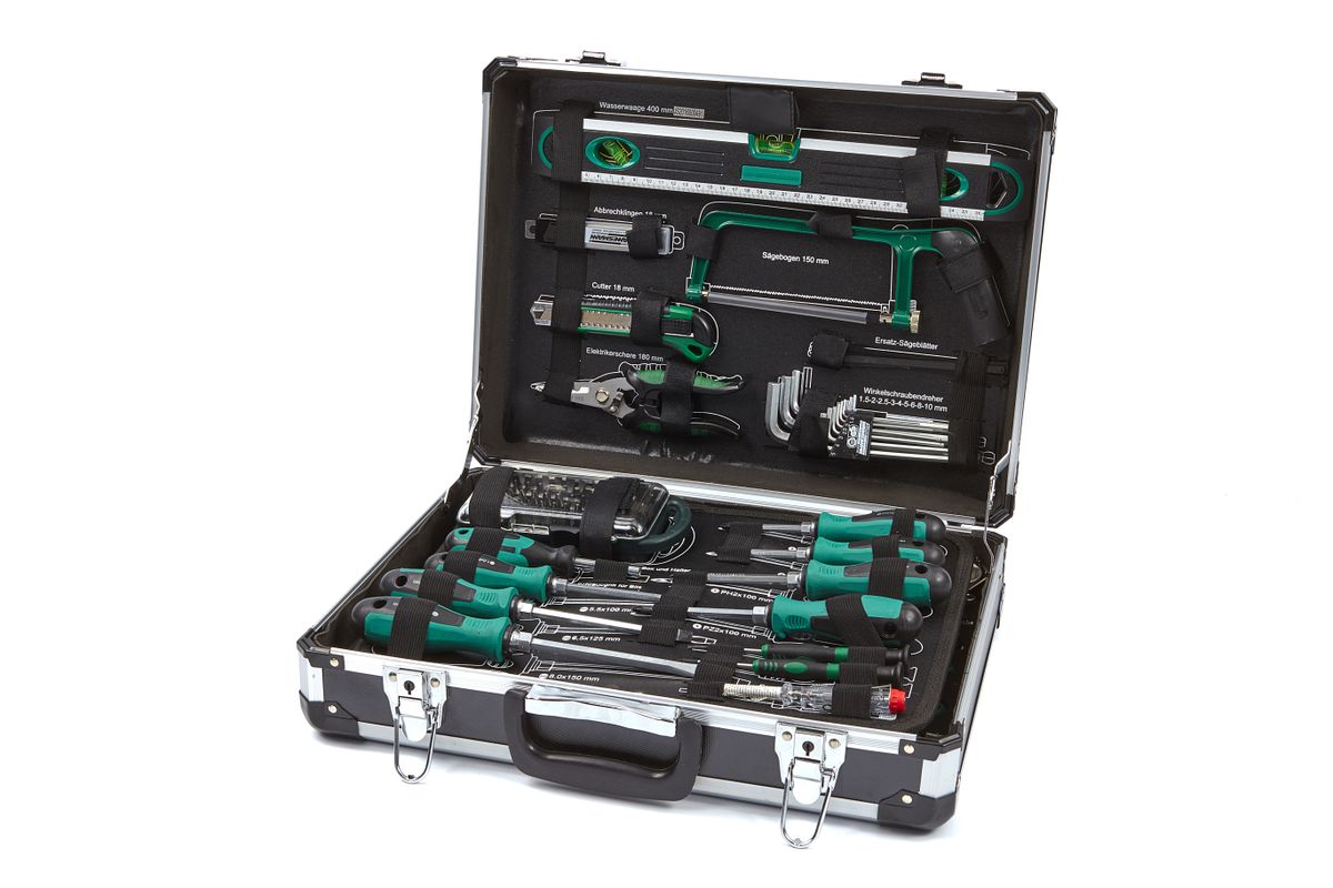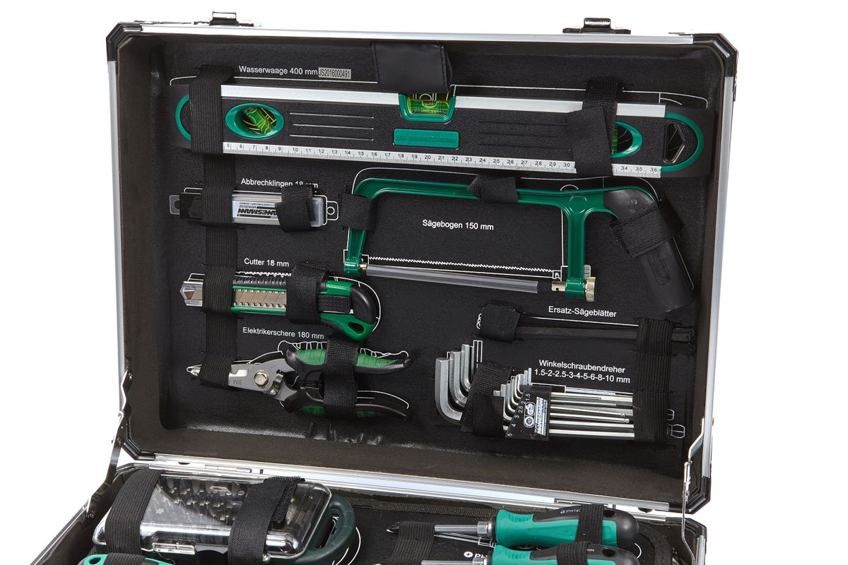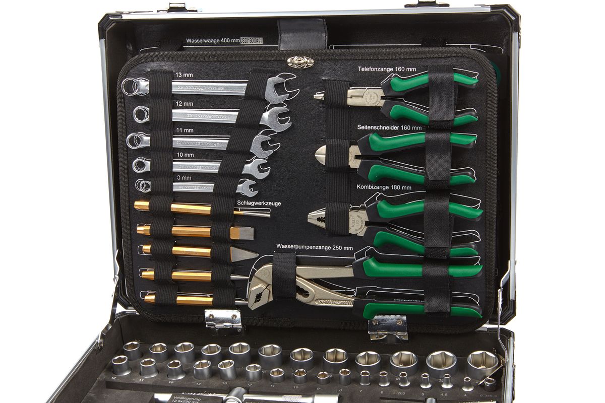 Deze professionele gereedschapskoffer is voorzien van Brüder Mannesmann handgereedschappen uit de Green Line serie. Deze gereedschappen staan bekend om hun goede kwaliteit en worden veel gebruikt in garages en industrie. Met deze gereedschapskoffer heb je altijd een complete uitrusting bij de hand. Al het gereedschap heeft een vaste plek in de koffer, en wordt netjes (slipvast) met klittenband houders op de plaats gehouden. Ideaal als je vaak op pad moet, of als je niet over veel ruimte beschikt. Alle gereedschappen hebben een vaste plek in deze professionele koffer. Zo hoeft je niet meer te zoeken naar de juiste maat dop of steeksleutel. De maten staan netjes bij de sleutels aangegeven dus je ziet direct welk gereedschap de juiste maat heeft. Dat werkt snel, makkelijk en vooral professioneel. Dit is een uitstekende complete gereedschapskoffer voor zowel de professional als de ervaren doe-het-zelver.