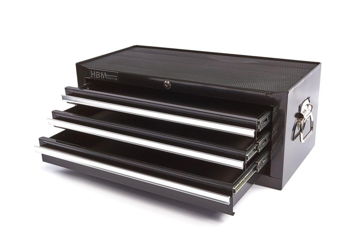 De HBM B gereedschap opzetkast ZWART is een handige opzetkast in de serie B van HBM. De kast is stapelbaar, maar je kan hem natuurlijk ook afzonderlijk ergens neerzetten. Deze opzetkast heeft drie lades en is voorzien van een kras- en slagvaste poedercoating. Alle lades kunnen afzonderlijk volledig geopend worden en met één centraal slot sluit je deze opzetkast voor gereedschappen in z’n geheel af. De kast is compatibel met de andere kasten en onderdelen uit de B serie van HBM. Over de HBM gereedschap opzetkast ZWART Deze opzetkast zorgt ervoor dat al je gereedschappen overzichtelijk kunnen worden opgeborgen. De lades hebben solide gelagerde geleiders, zodat je elke lade afzonderlijk helemaal kunt openen. Wil je de set compleet maken? Bekijk dan ook alle andere opzetkasten en meubels uit deze B serie van HBM. De serie is ook verkrijgbaar in de kleur rood.