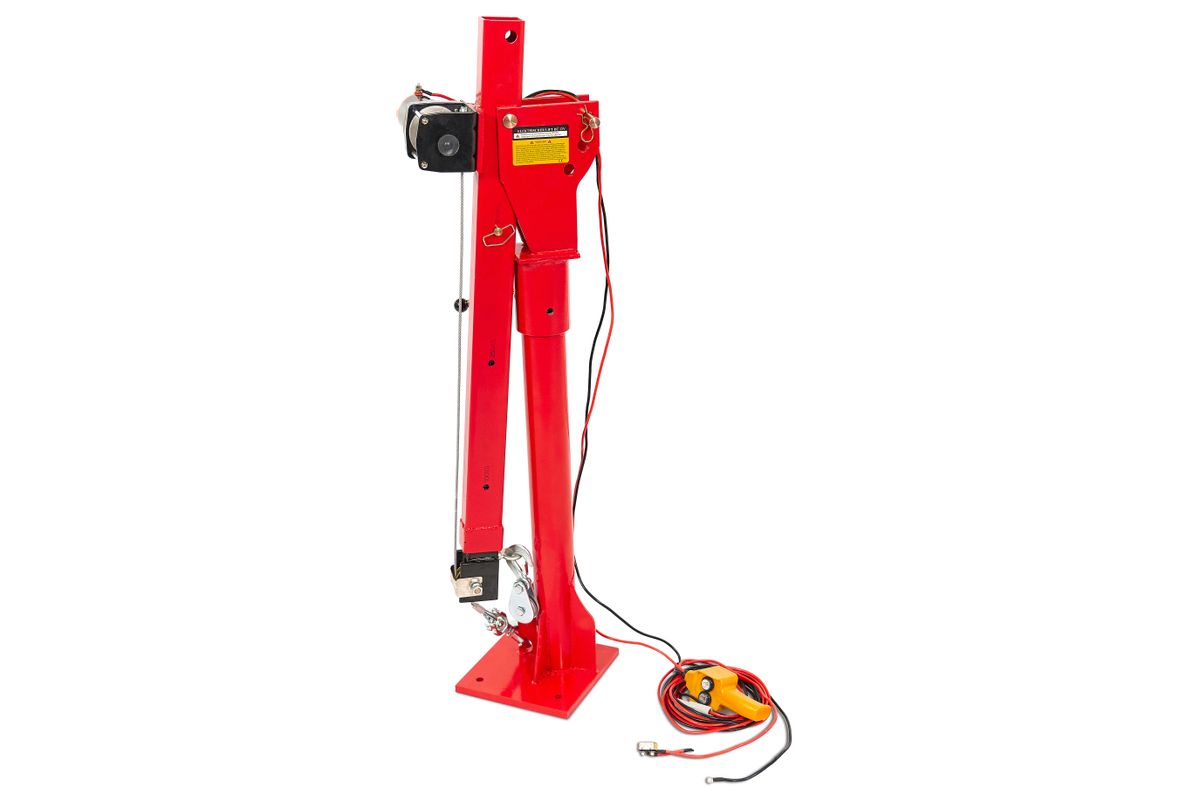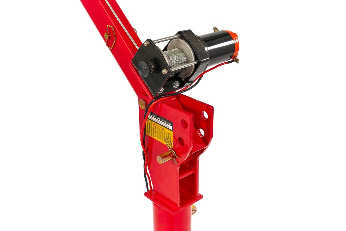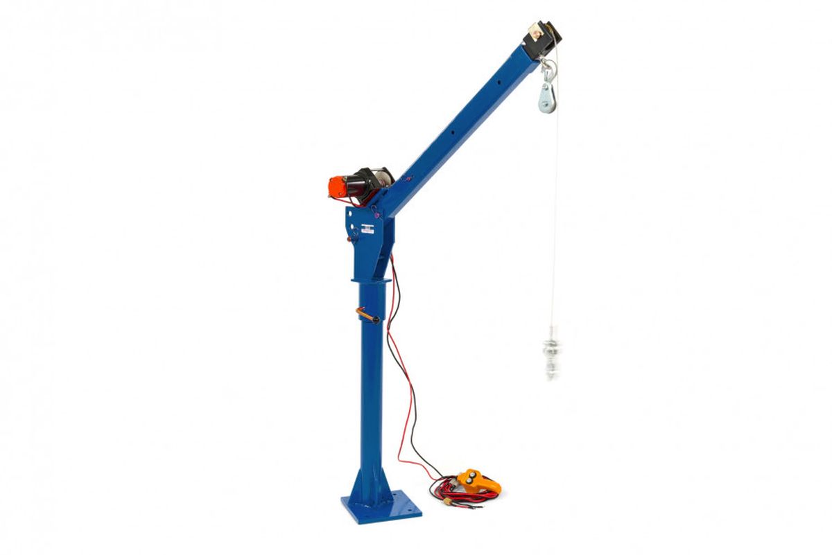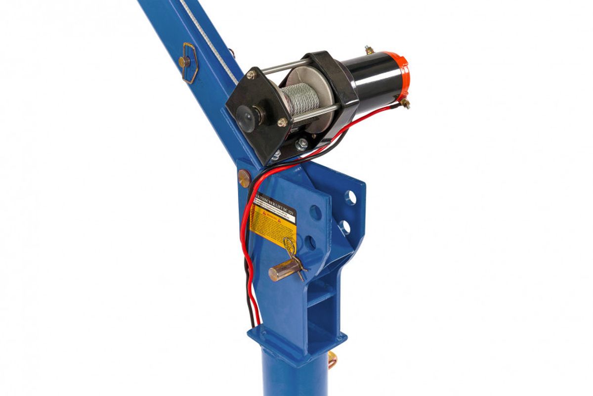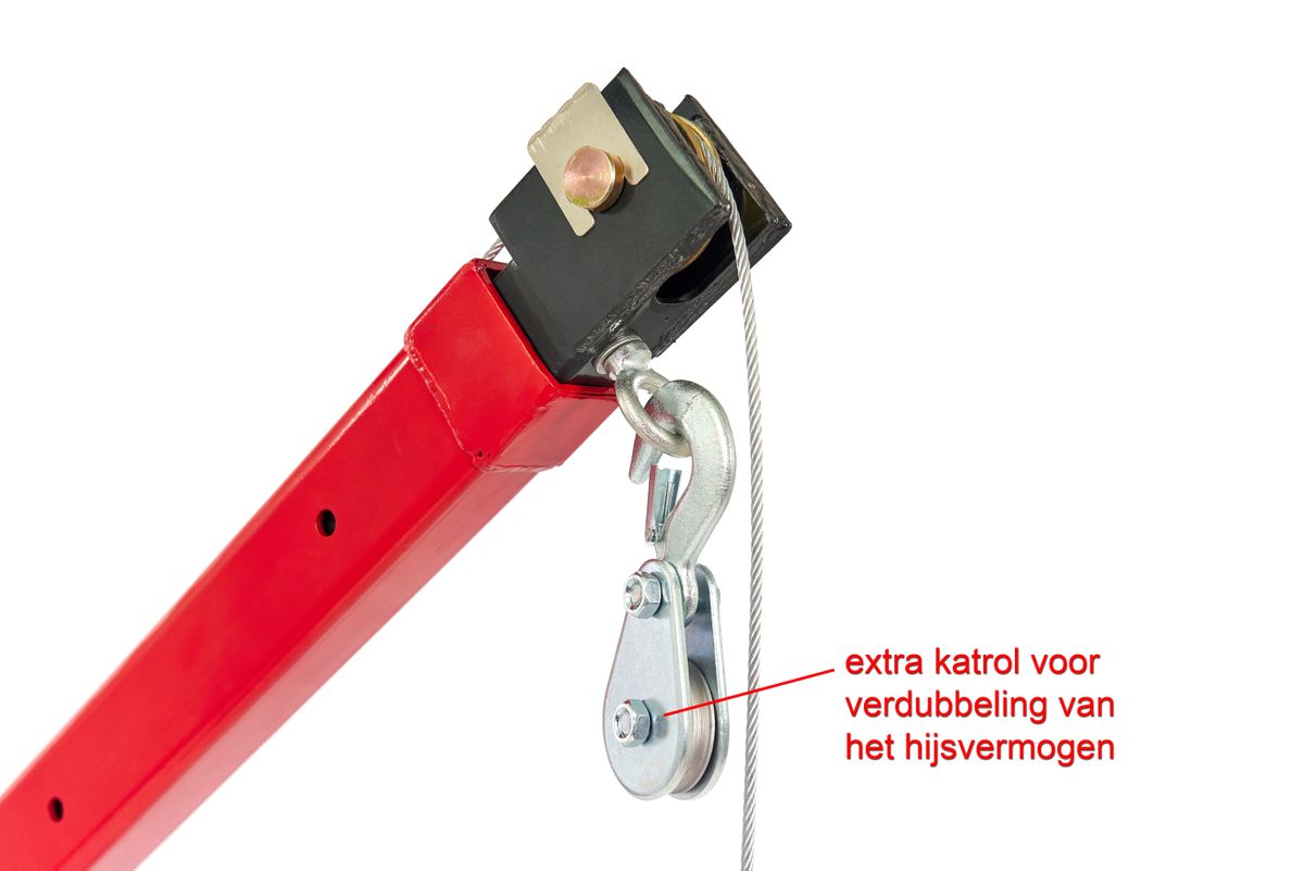 Je eigen hijskraan die zware lasten vanaf een aanhangwagen of bakwagen in de laadruimte hijst? Dan is dit wat je zoekt! Deze hijskraan is in ingeschoven en opgeklapte vorm zeer compact, terwijl in uitgeklapte en uitgeschoven stand, de hijsarm een bereik van bijna 1,7 meter heeft. Omdat de hijsarm echter 360° rond zijn poot kan worden gedraaid is, betreft dit bereik dus de straal van een cirkel met een diameter van bijna 3,2 meter. Kortom: Het totale bereik van deze hijskraan bedraagt dus bijna 3,2 meter! Het zwenklager van deze laadkraan is kogelgelagerd. Hierdoor loopt het zwenken (roteren) met de hijsarm bijzonder soepel! Natuurlijk is het ook mogelijk om de rotatie van de hijsarm vast te zetten met een hendel. Het hijsen geschiedt met behulp van een krachtige 12V lier, die dankzij de degelijk uitgevoerde tandwiel vertragingskast lasten kan hijsen van 500 kg. Met behulp van de meegeleverde katrol kan het hijsvermogen worden verhoogd tot 500 kg. De 8 meter lange kabel is meer dan lang genoeg om voldoende hijshoogte over te houden als men de katrol gaat gebruiken. De lier laat zich bedienen met een ergonomisch vormgegeven handbediening met twee knoppen (op en neer) De hellingshoek van de hijsarm is verstelbaar in 3 stappen (0° – 22.5° – 45°). Verder is de hijsarm uitschuifbaar. Bij een maximaal uitgeschoven hijsarm en bij een hellingshoek van 45°, wordt een totale hefhoogte van 2,2 meter bereikt (gemeten vanaf de voet van de hijskraan). Deze hijskraan is een echt werkpaard dat het laden en lossen van zware lasten vanuit een aanhanger of bakwagen zeer gemakkelijk maakt!