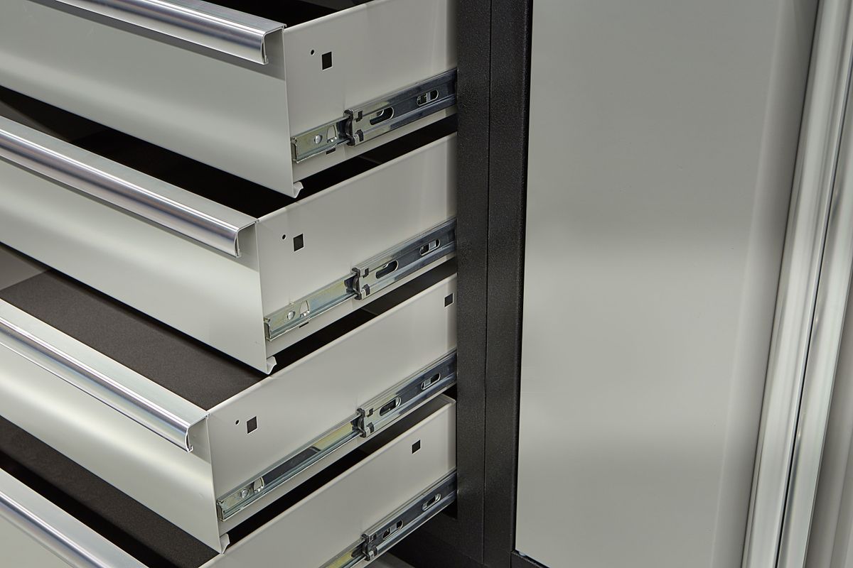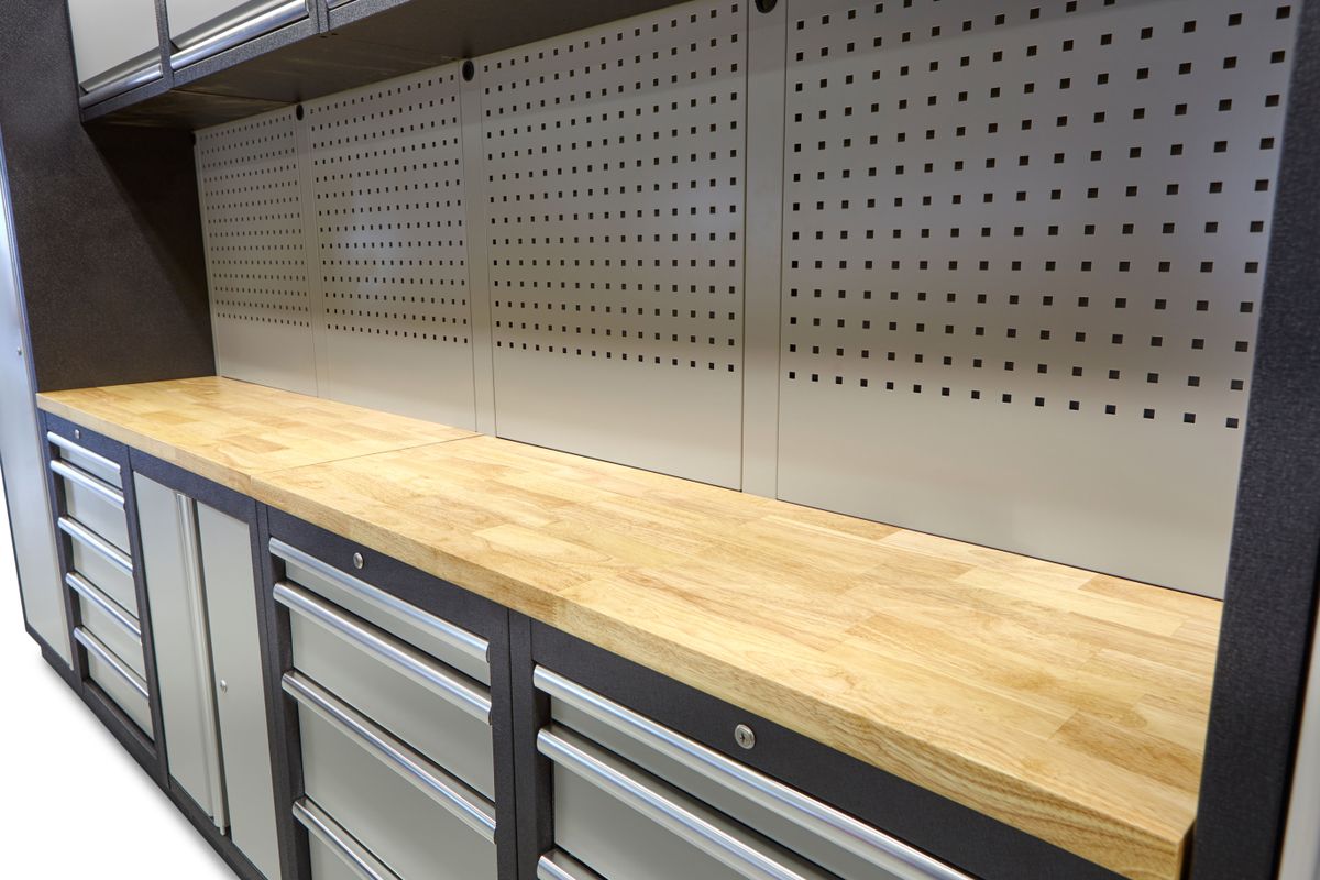 Dit nieuwe modulair system van HBM is de ultieme werkplek, en hierdoor verhoogt u de productiviteit en efficiency in uw werkplaats of garage. Modulair werkplaatskast en werkplek systeem is geschikt voor het inrichten van de werkplaats. De laden hebben alle een individuele vergrendeling en zijn centraal afsluitbaar. De werkbladen, gemaakt van berkenhout, hebben een beschermende vernislaag van lijnolie.