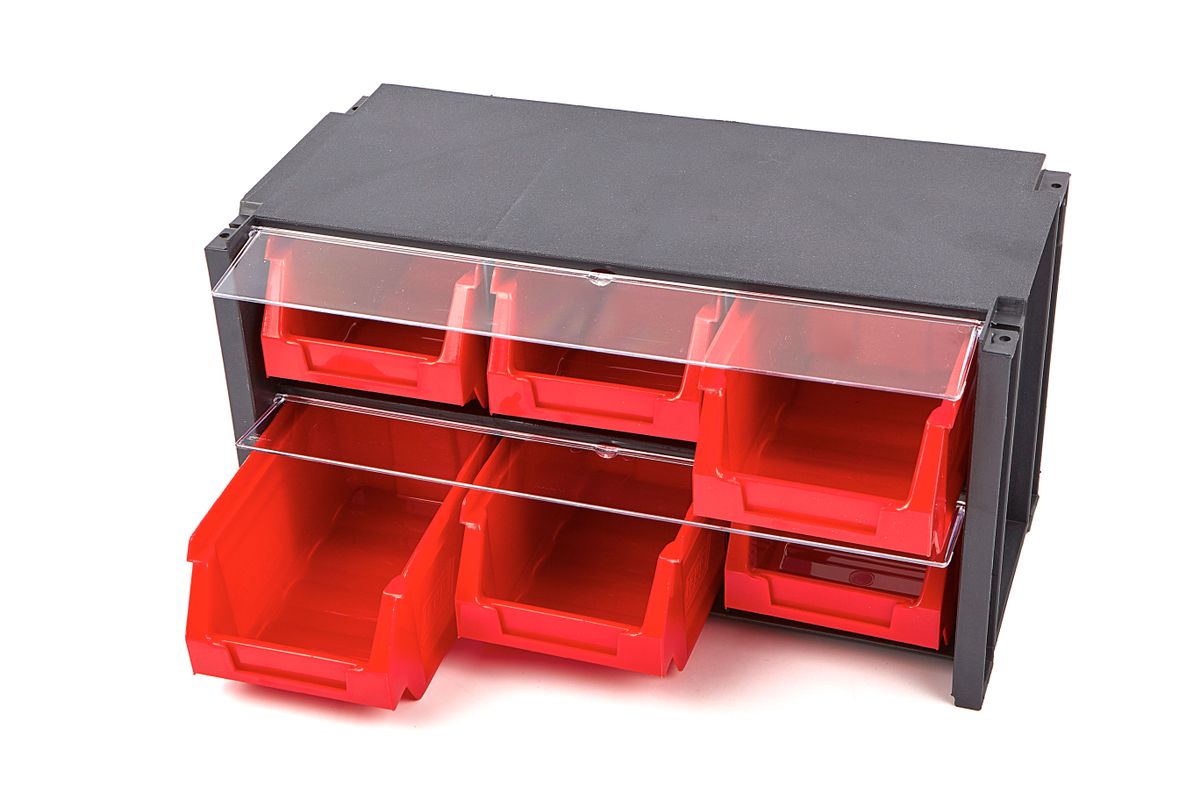Dit Tayg opbergsysteem met zes bakken is ideaal voor zowel de professionele werkplaats als voor de hobbyist. Kleine materialen berg je direct op in de bakjes. Je plaatst deze Tayg ladenkast op de werkbank, zodat je direct alles bij de hand hebt. Dat werkt snel en prettig. Schaf je meerdere van deze assortimentskasten aan, dan kun je ze eenvoudig stapelen. Bespaar je ook nog ruimte. Deze Tayg ladekast kun je combineren met de andere ladekasten van dit systeem. Zo kun je het opbergsysteem helemaal naar jouw eigen inzicht samenstellen. Over het Tayg 6 bakken opbergsysteem Bouten, moeren, o-ringen, naalden, garens en nog veel meer kun je in dit Tayg 6 bakken opbergsysteem bewaren. Netjes gesorteerd, zodat je niet meer hoef te zoeken of misgrijpt. Dankzij de transparante klepjes zie je direct wat er in de bakjes bewaard wordt. Je kunt overigens ook de bakjes van een sticker voorzien. Het gemak dient de mens.