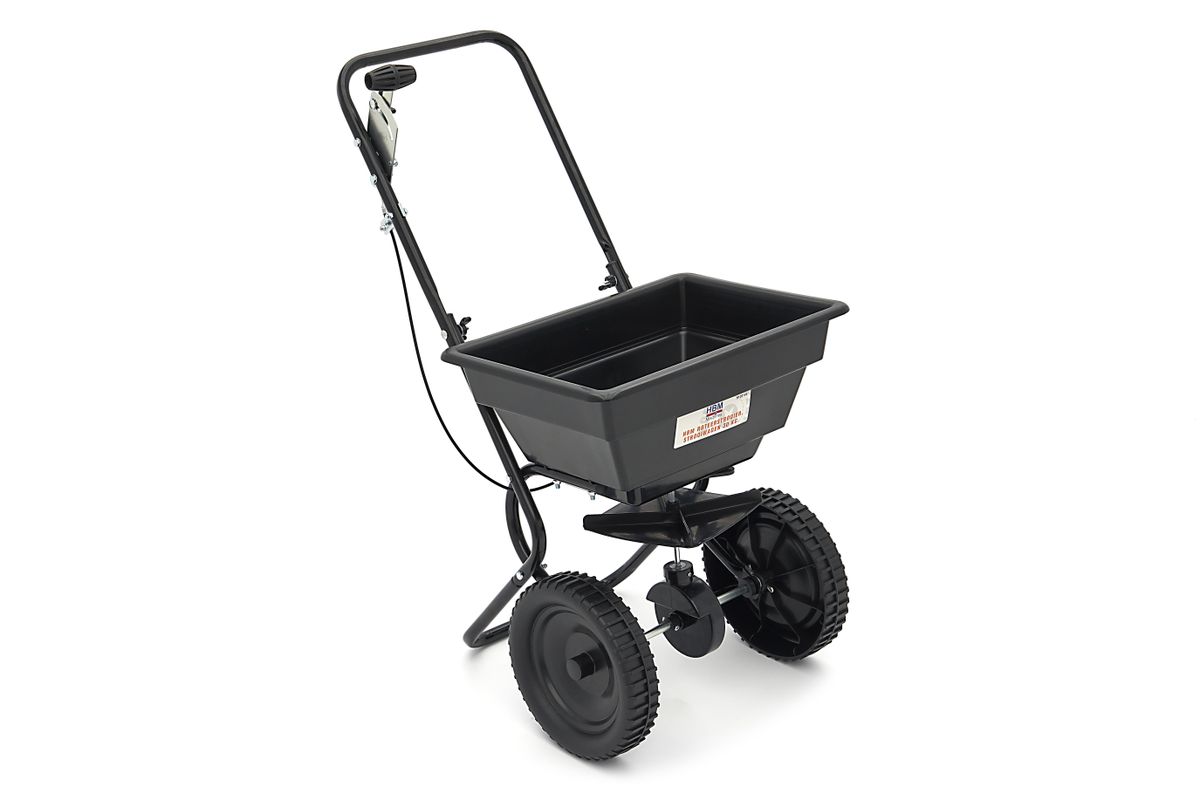 Laat de winter maar komen want met deze HBM Roteerstrooier, Strooiwagen met 12″ (30cm) kunststof wielen, regelbare strooirichting en afdekzeil. Strooibreedte tot 3 meter en regelbare strooirichting d.m.v. kleppen incl. afdekhoes en rooster. Deze HBM Roteerstrooier, Strooiwagen is uitermate gebruiksvriendelijk en geschikt voor professioneel gebruik. U kunt deze duwstrooier gebruiken in de tuin, rond het huis of bedrijf en op de parkeerplaats. Met deze strooiwagen maakt u makkelijk uw (loop)paden en parkeerplaats sneeuw- en ijsvrij, daarnaast is de strooiwagen ook uitermate geschikt voor het strooien van o.a. kunstmest, gras en grind. De strooiwagen is voorzien van een strooi hendel waardoor u de hoeveelheid strooisel kunt bepalen.