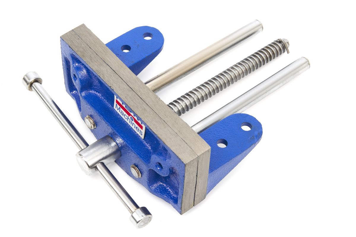 Deze meubelmakers bankschroef heeft een gietijzeren frame met chroom geplateerd schroefhandvat en uitlijningsstaven.De meubelmakers bankschroef is op elke werkbank te monteren, kan boven en onderop de werkbank gemonteerd worden voor licht klemwerk.