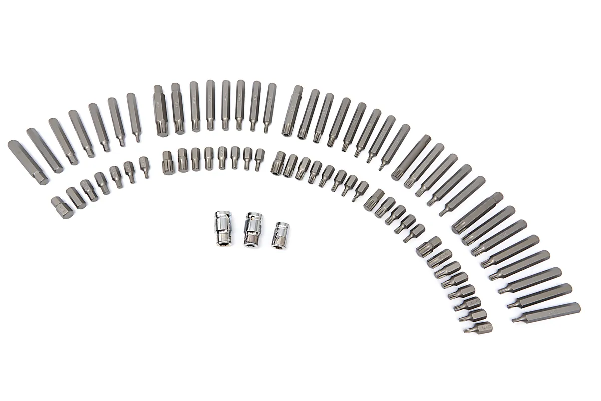 De HBM 75 Delige Inbus, Torx, Spline en Ribe Doppenset biedt een uitgebreide selectie bits voor uiteenlopende toepassingen. De set bevat diverse lengtes inbusbits, Torx-bits, spline- en ribbits in gangbare maten. Dankzij de stevige bit houders zijn de doppen snel te wisselen. Geschikt voor werkplaats en intensief gebruik.