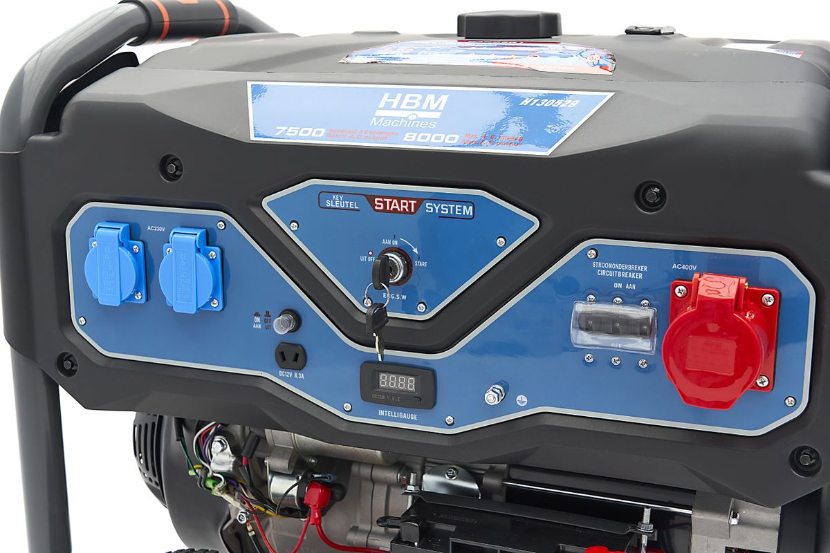 De HBM 3.800 Watt benzine krachtstroom generator is een uiterst krachtige en betrouwbaregenerator, voor het opwekken van stroom in zowel kleinschalige alsgrootschalige werkomgevingen. Dankzij een energiezuinige en duurzame 389 cc4-Takt benzinemotor is het mogelijk om stabiel stroom te genereren voor thuis,op de bouwwerf of op een andere werkplek. Ook de elektrische start en deautomatische spanningsregelaar maken het apparaat de moeite waard voor wie opzoek is naar betrouwbare mobiele stroomvoorziening. De machine wordt zonder olie geleverd en start niet zonder olie. Hiervoor isproduct E100060-1L te gebruiken. Overige specificaties Dankzij dit krachtige aggregaat gebeurt het genereren van stroom voor verschillende toepassingen veilig, efficiënt en energiezuinig Een gebruiksduur van dertien uur op één tank maakt het apparaat geschikt voor langdurige werken, en daar draagt ook een oliecapaciteit van 1,1 L aan bij Een output van 1x 400 Volt, 2 x 230 Volt en 2 x 12 Volt bieden voldoende werkkracht voor meer dan één apparaat Dankzij de wielen kan het 95 kilogram zware apparaat toch eenvoudig verplaatst worden zodat het zijn beloofde mobiliteit ook echt waarmaakt Elektrische start en automatische spanningsregelaar Ondanks 95 kg makkelijk te verplaatsen door twee wielen en 1 handvat