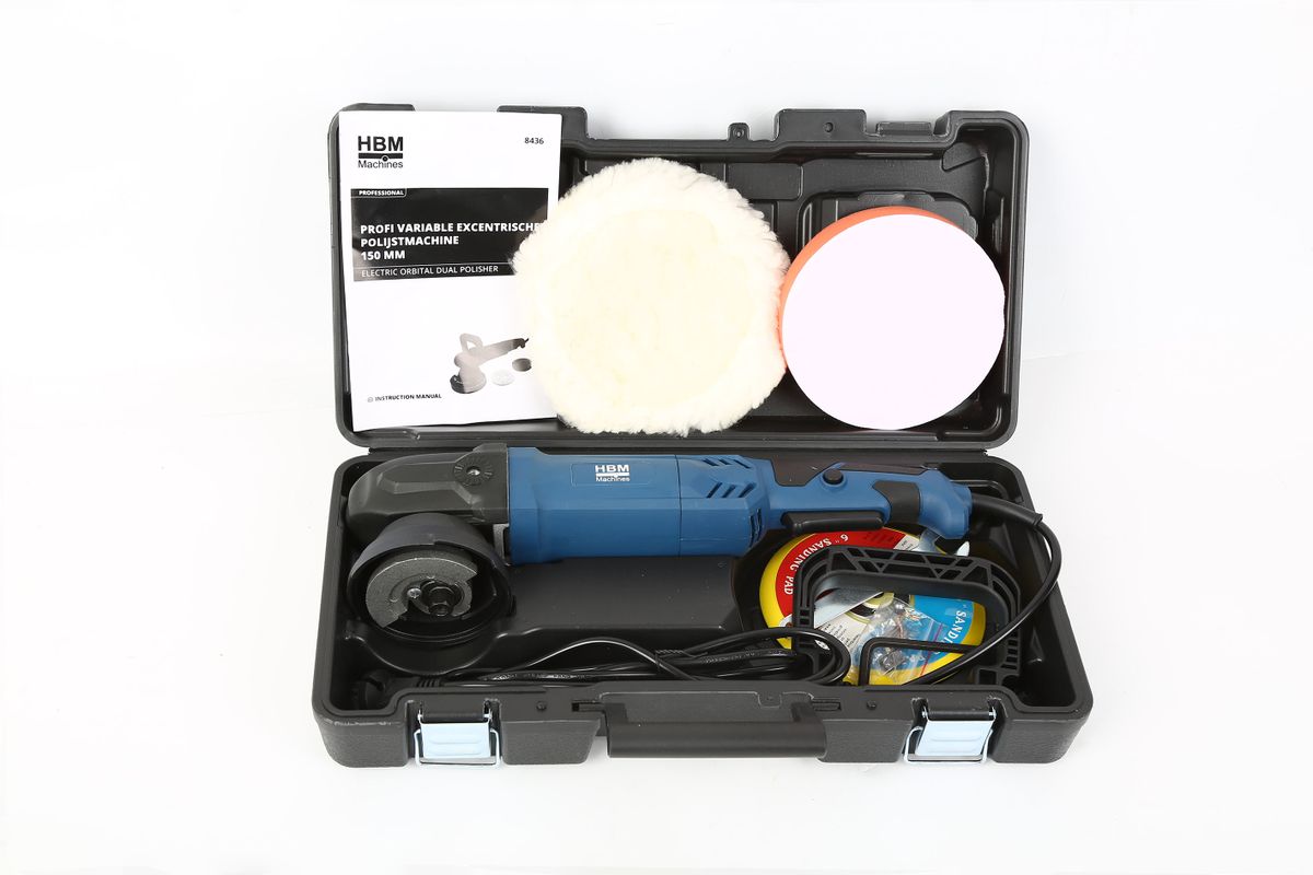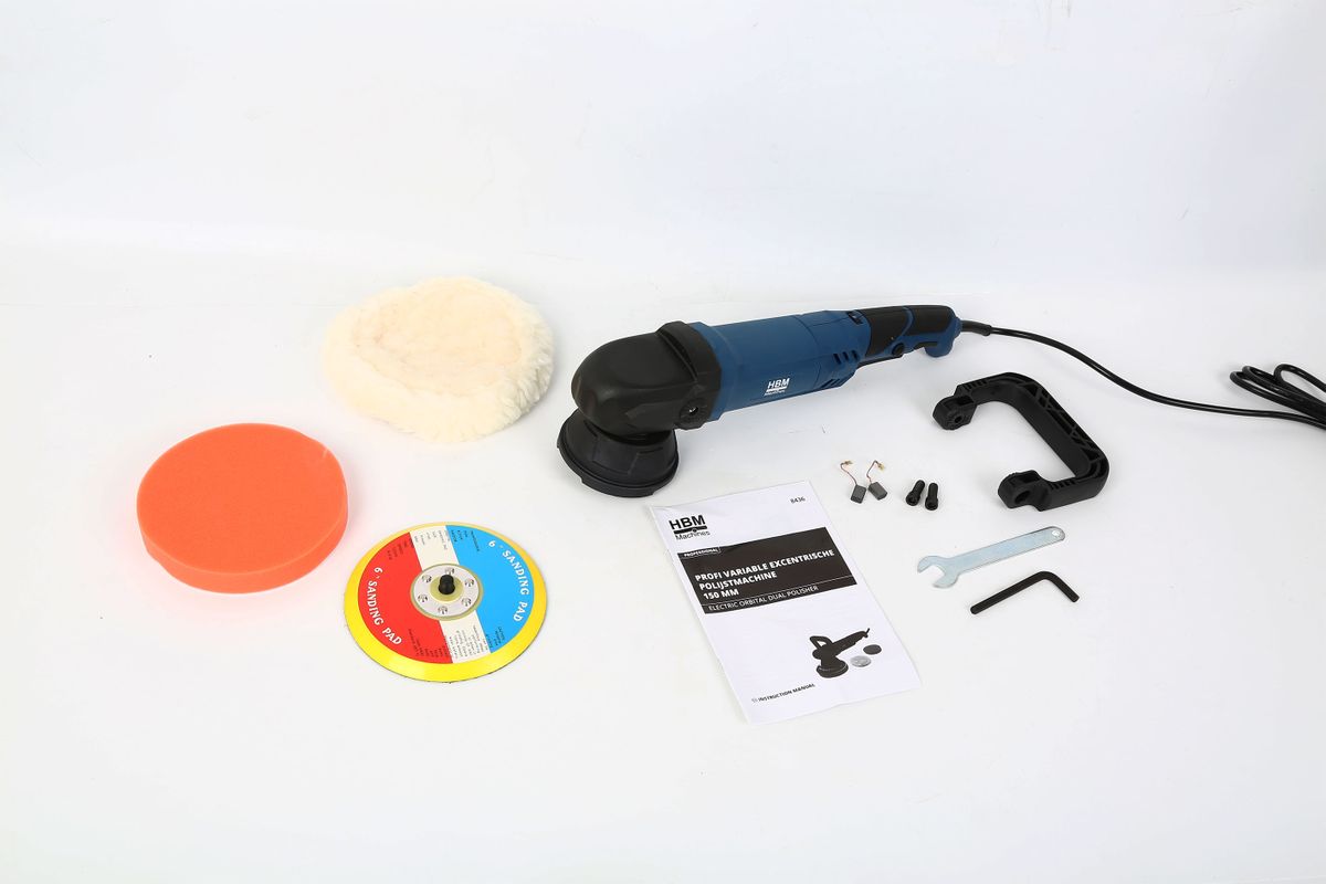 De HBM 150 mm Variable Excentrische Polijstmachine is ideaal voor het uitvoeren van diverse polijstklussen. Deze machine wordt geleverd met drie verschillende polijstschijven, zodat je altijd de juiste afwerking voor jouw project kiest. Dankzij de klittenbandopname wissel je snel van schijf en werk je efficiënt door. De polijstmachine is geschikt voor het behandelen van autolak, kunststof en andere oppervlakken. Het apparaat ligt prettig in de hand en is eenvoudig te bedienen. Met een snoer van twee meter heb je bovendien voldoende bewegingsvrijheid tijdens het werken. Voor het beste resultaat gebruik je de machine in combinatie met een passende polijstpasta. Een praktische en veelzijdige oplossing voor elke werkplaats of garage.