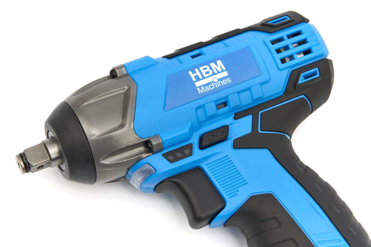 Vastzittende of vastgeroeste moeren zijn totaal geen probleem meer voor je, wanneer je deze HBM 10,8 Volt professionele accu slagmoersleutel met twee accu’s gebruikt. De slagmoersleutel is voorzien van een ergonomische handgreep en heeft een ledlampje waardoor je ook bij slecht licht kunt werken.HBM Power10De HBM slagmoersleutel valt binnen het HBM Power10 platform. De machine werkt met een accu van 10,8 volt en gebruik je voornamelijk voor lichte tot middelzware doe-het-zelf klussen en kleine tot middelgrote reparaties. Het is handig voor taken waar je niet vast gebonden bent aan een stopcontact en de bewegingsvrijheid nodig hebt, zoals boren en schroeven. De HBM slagmoersleutel behoort tot het HBM Power10 accuplatform. De accu’s en acculaders zijn binnen dit platform uitwisselbaar.