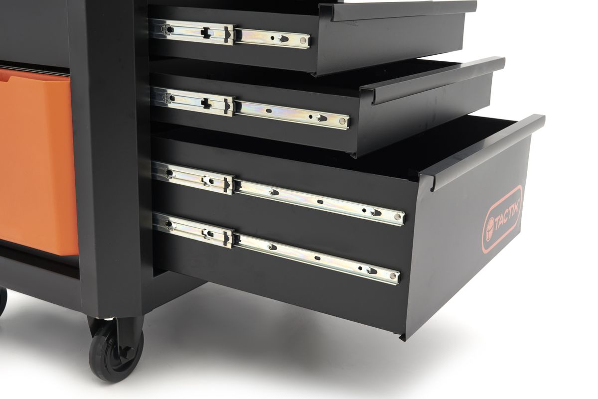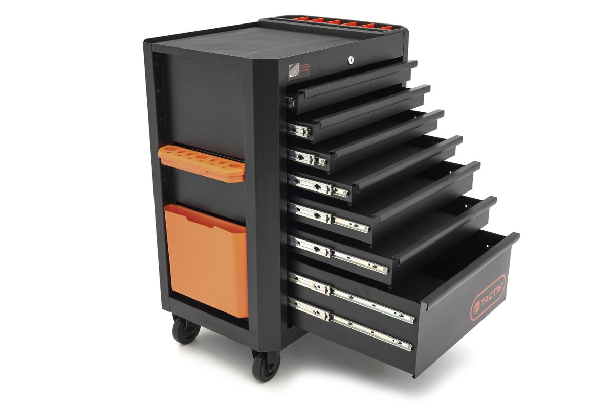 De Tactix gereedschapswagen met 7 laden en een breedte van 66 cm is een robuuste en praktische opbergoplossing voor al uw gereedschap. Deze gereedschapswagen is ideaal voor zowel de gevorderde monteur als doe-het-zelvers die behoefte hebben aan een betrouwbare, stevige en duurzame oplossing voor het opbergen en verplaatsen van hun gereedschap.