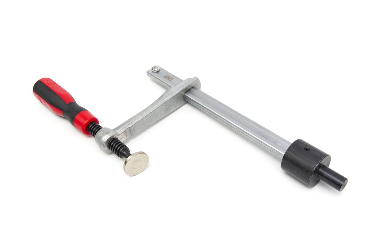 De HBM 220 mm Lijmklem Voor Lastafel is een Hoogwaardige 2-componenten lijmklem met kunststof handgreep en knevelgreep met afgeronde uiteinden elk met lichtlopende spil met trapeziumdraad en drukplaat die zonder gereedschap kan worden vervangen.