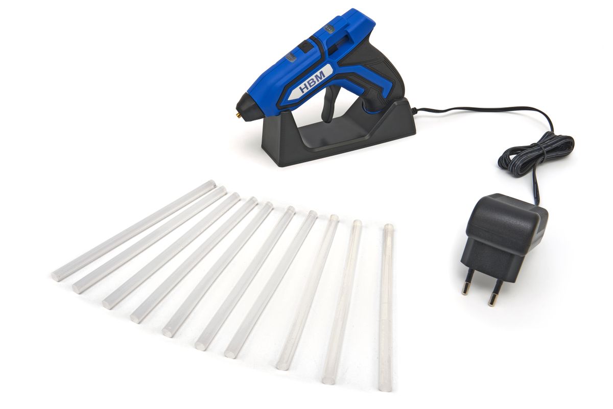 Dit professionele lijmpistool is een onmisbaar hulpmiddel in de werkplaats van de bouwvakker of andere vakman. Doordat het lijmpistool dankzij het ergonomische design en het lage gewicht goed in de hand ligt, kunt u snel en precies werken, bovendien is het apparaat kabelloos.Het gebruik van dit apparaat is bedoeld voor het verlijmen van hout, karton, verpakkingen, leer, keramiek, glas, tapijten, pakkingen, kunststof, stoffen, kurk en metaal.Voor dit lijmpistool is de 10 delige lijmpatronenset geschikt, artikelnummer H130048.