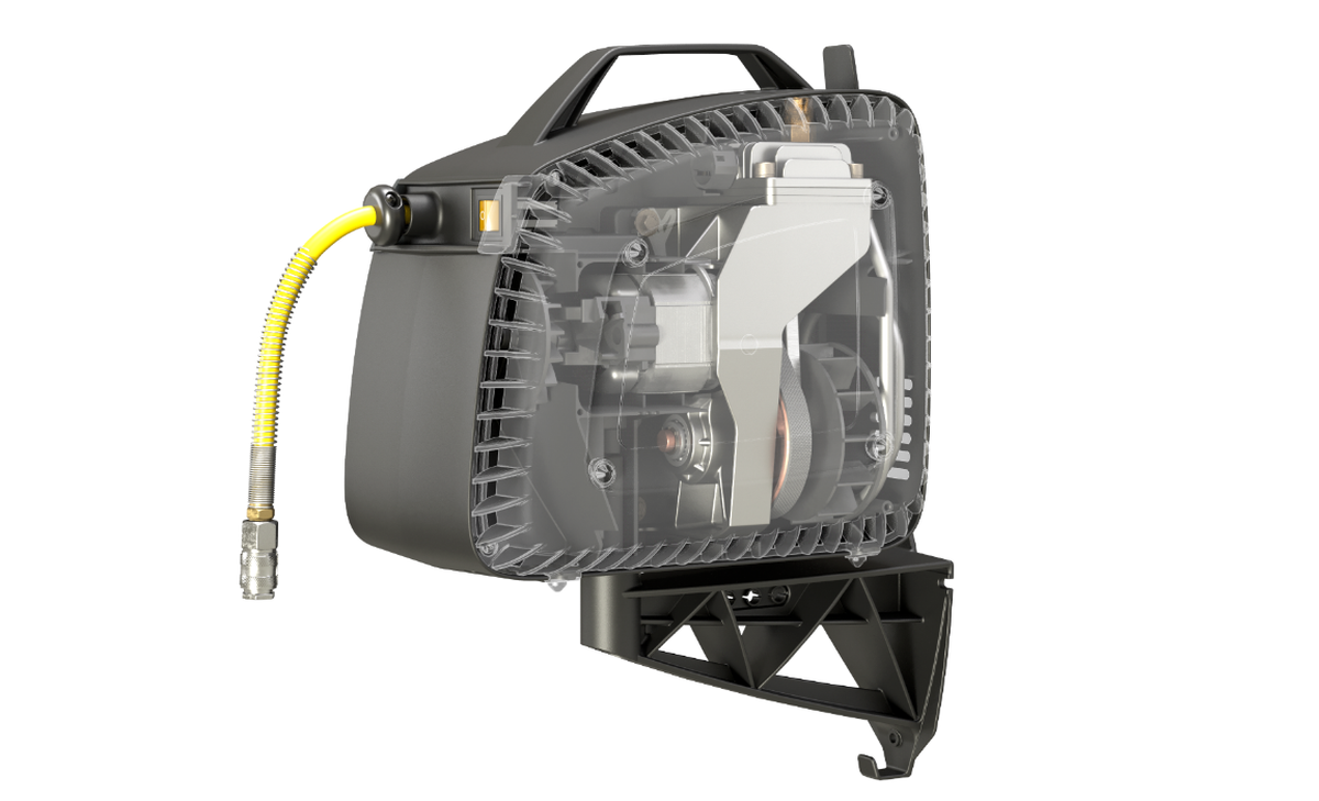 Een luchthaspel kan gebruikt worden voor het eenvoudig toevoegen van lucht. Deze Michelin 7 Meter Automatische Luchthaspel met 1,5 Pk Geïntegreerde Olieloze Compressor is eenvoudig in gebruik, is onderhoudsvrij en kan makkelijke uit- en ingetrokken en opgeborgen worden. De haspel komt uitstekend van pas op tal van werkplekken. Zo kun je de luchthaspel gemakkelijk gebruiken in autogarages of transportbedrijven, door met de luchthaspel snel banden op te pompen. Uiteraard is deze luchthaspel draaibaar, los te koppelen door middel van de borgpen en ook uitstekend geschikt voor gebruik in de doe-het-zelf hobbyruimte en in elke thuisgarage. De compressor wordt geleverd inclusief snelkoppelingen, luchtpistool en bevestigingsmateriaal. Deze haspel is niet voorzien van een accu.
