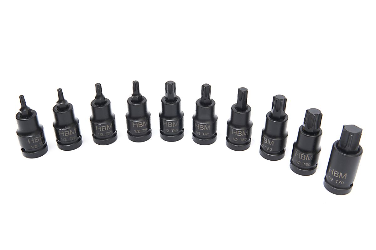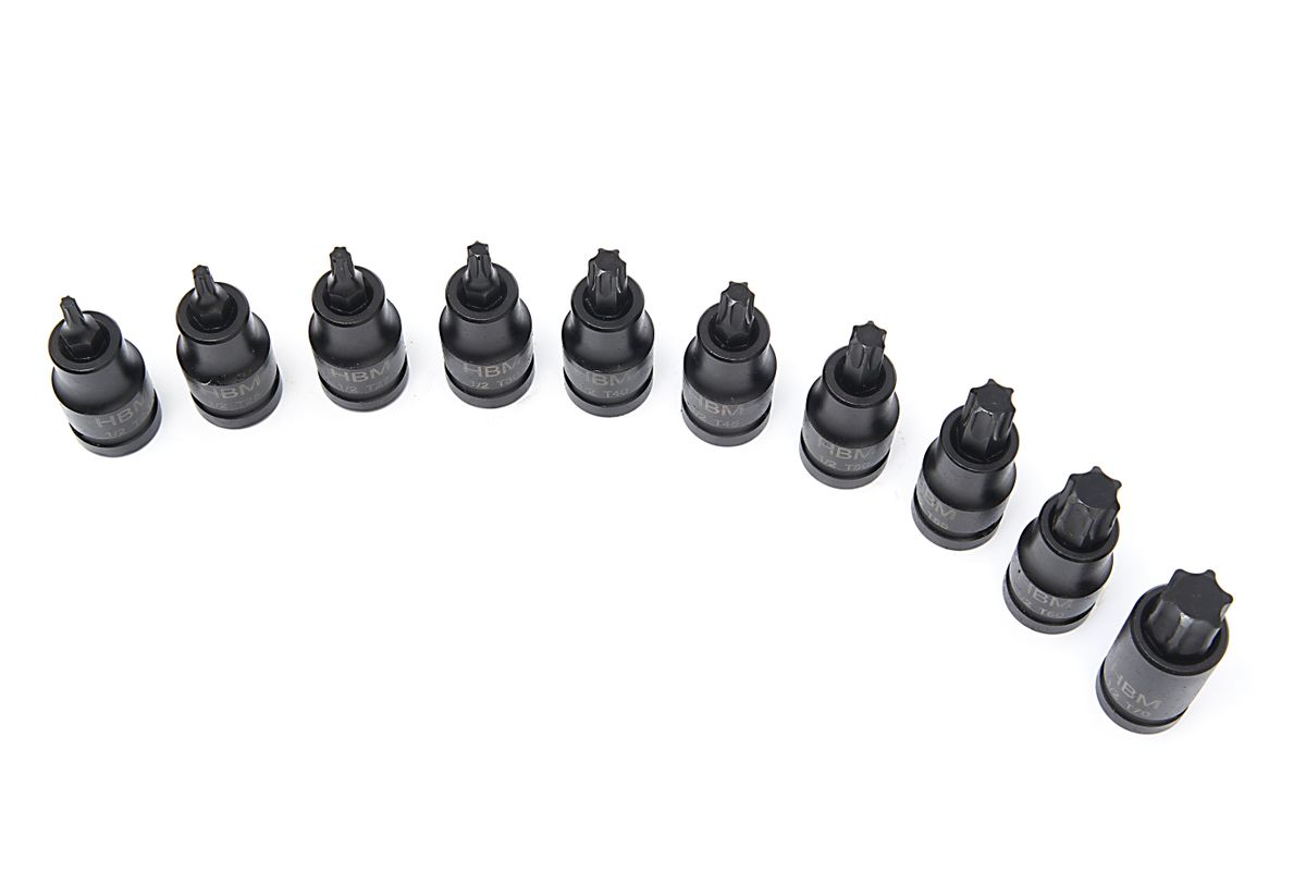 HBM 10-delige ½” krachtdoppenset Torx is ideaal voor intensief gebruik met slag- of momentsleutels. De doppen zijn geschikt voor Torx-schroeven en gemaakt van gehard staal. Perfect voor werkplaatsen en zwaar montagewerk.