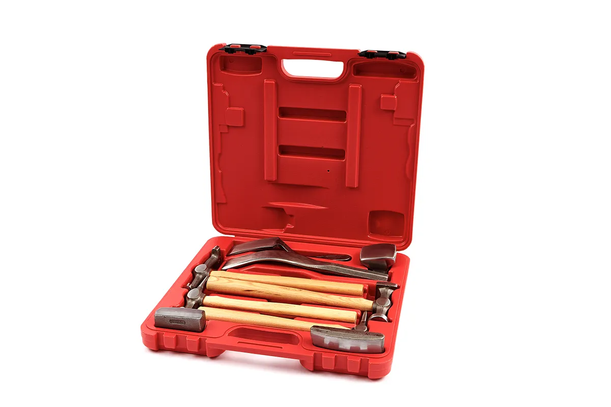 De HBM 10 Delige Hamer Uitdeukset Model 3 is een complete set voor het effectief herstellen van schade aan plaatmateriaal. Deze set is speciaal samengesteld voor carrosseriewerkzaamheden en metaalbewerking, en biedt een veelzijdige combinatie van hamers en aambeelden om deukjes, vervormingen en andere onregelmatigheden in plaatwerk nauwkeurig te corrigeren. De set bevat diverse uitdeukhamers met verschillende kopvormen, waaronder een vlakhamer, een penhamer en een pickhamer, elk ontworpen voor specifieke bewerkingen. De meegeleverde dollies — in vlakke, gebogen en kroonvormige varianten — bieden optimale ondersteuning bij het hameren, ook op moeilijk bereikbare plekken. Dankzij het ergonomisch ontwerp en het gebruik van hoogwaardig staal biedt deze set duurzaamheid en controle bij elke slag. Of je nu werkt aan een voertuigrestauratie of kleine schade aan carrosserieën herstelt, deze set geeft je de precisie en kracht die je nodig hebt. Alles wordt overzichtelijk geleverd in een stevige kunststof opbergkoffer.