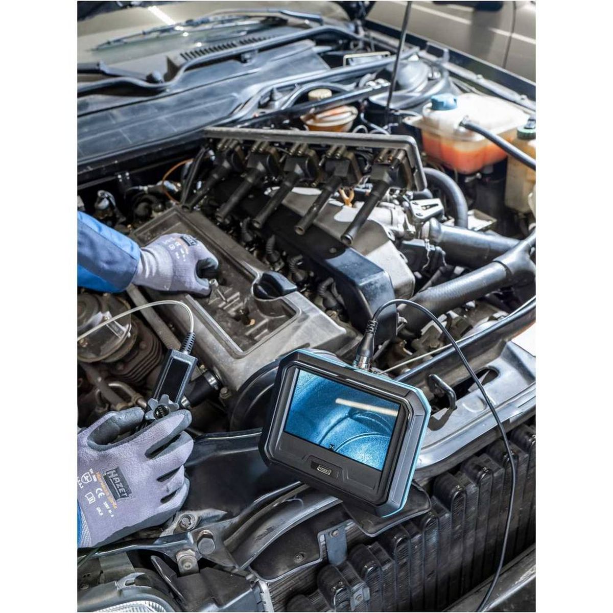 De Hazet HD touchscreen-endoscoopset met draaibare sonde opent een wereld van mogelijkheden voor nauwkeurige diagnose en gedetailleerde documentatie van caviteiten. Met zijn verbeterde natuurgetrouwheid en HD-camera levert deze endoscoopset hoogwaardige beelden voor een grondige schadebeoordeling. Het 127 mm (5 inch) touchscreen kleurendisplay, afleesbaar in zonlicht, biedt een intuïtieve bediening. Met een schermresolutie van 800 x 480 pixels, helderheidsaanpassing op 10 niveaus en 3x zoom, krijgt u een gedetailleerde weergave van de onderzochte ruimtes. De endoscoopset legt beelden vast in JPG-formaat met een resolutie van 1920 x 1080 pixels en video’s in MP4-formaat. U kunt zelfs een watermerk, tijdstempel en audio toevoegen aan uw opnames. Met handige functies zoals negatieve weergave, gegevensoverdracht via USB-C en een HDMI-poort voor video-uitvoer, is deze endoscoopset een veelzijdig instrument. Dankzij de draaibare magnetische voet (180° verstelbaar), schroefdraad voor statiefschroefverbinding, en compact ontwerp is de endoscoop eenvoudig te positioneren. Met functies zoals automatische uitschakeling, spiegeling van het camerabeeld, en het labelen van foto’s op het touchscreen, biedt deze set gebruiksgemak en flexibiliteit. Met zijn Li-Ion batterij, die in 3,5 uur oplaadt en tot 4 uur gebruiksduur biedt, is de Hazet endoscoopset betrouwbaar inzetbaar. De ingebouwde microfoon, en compatibiliteit met HAZET HD-sondes maken dit de ideale keuze voor professionals die precisie en efficiëntie eisen.