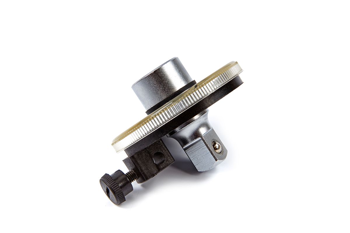 Momentsleutel Hoekkaliber -Gradencirkelsleutel met verstelbare blokkeer inrichting. Aandrijving: 1/2 inch in en uitgang. Van 0-360° verstelbaar. Schaalverdeling: 360 graden. Met vastzet staaf ( 10 x 5,5 cm) Aansluiting: in- en uitwendig 1/2 inch Schaal diameter 68 mm. Te gebruiken met momentsleutel of ratel. Draaihoek meetgereedschap voor gebruik op 1/2 inch draaimomentsleutels. Vast te zetten op de momentsleutel met behulp van een klemschroef.