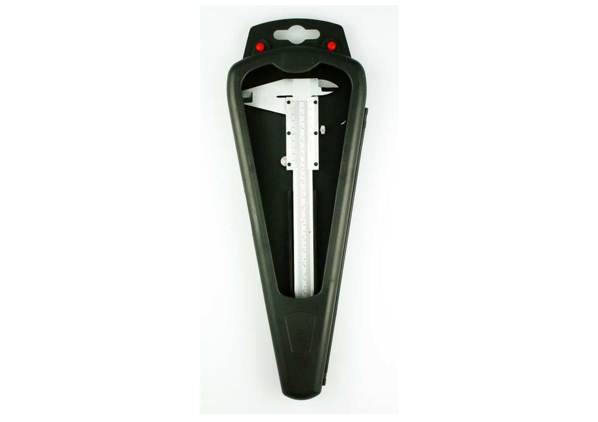 Deze verchroomde inox schuifmaat van Toolvizion biedt nauwkeurige metrische of inch metingen. De gemeten maat kan worden geborgd middels de borgschroef. Door de duidelijke schaalverdeling is de maat gemakkelijk af te lezen. De schuifmaat wordt geleverd in een hersluitbare kunststof opberghuls.