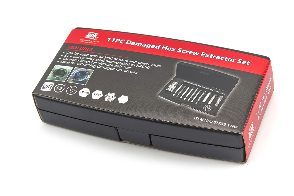 De AOK 11 Delige Professionele Dolle INBUS removerset model Grabit is ideaal om gebroken en beschadigde inbusbouten er makkelijk en éénvoudig uit te draaien. Deze set is geschikt voor het verwijderen van alle inbusbouten van alle soorten materialen. Zelfs RVS is geen probleem. Je kiest de juiste maat en draait tegen de klok in om een nieuwe schroefkop te maken. Vervolgens met behulp van de speciale schroefkop draai je de beschadigde inbusbout eruit. Ideaal voor elke vakman.