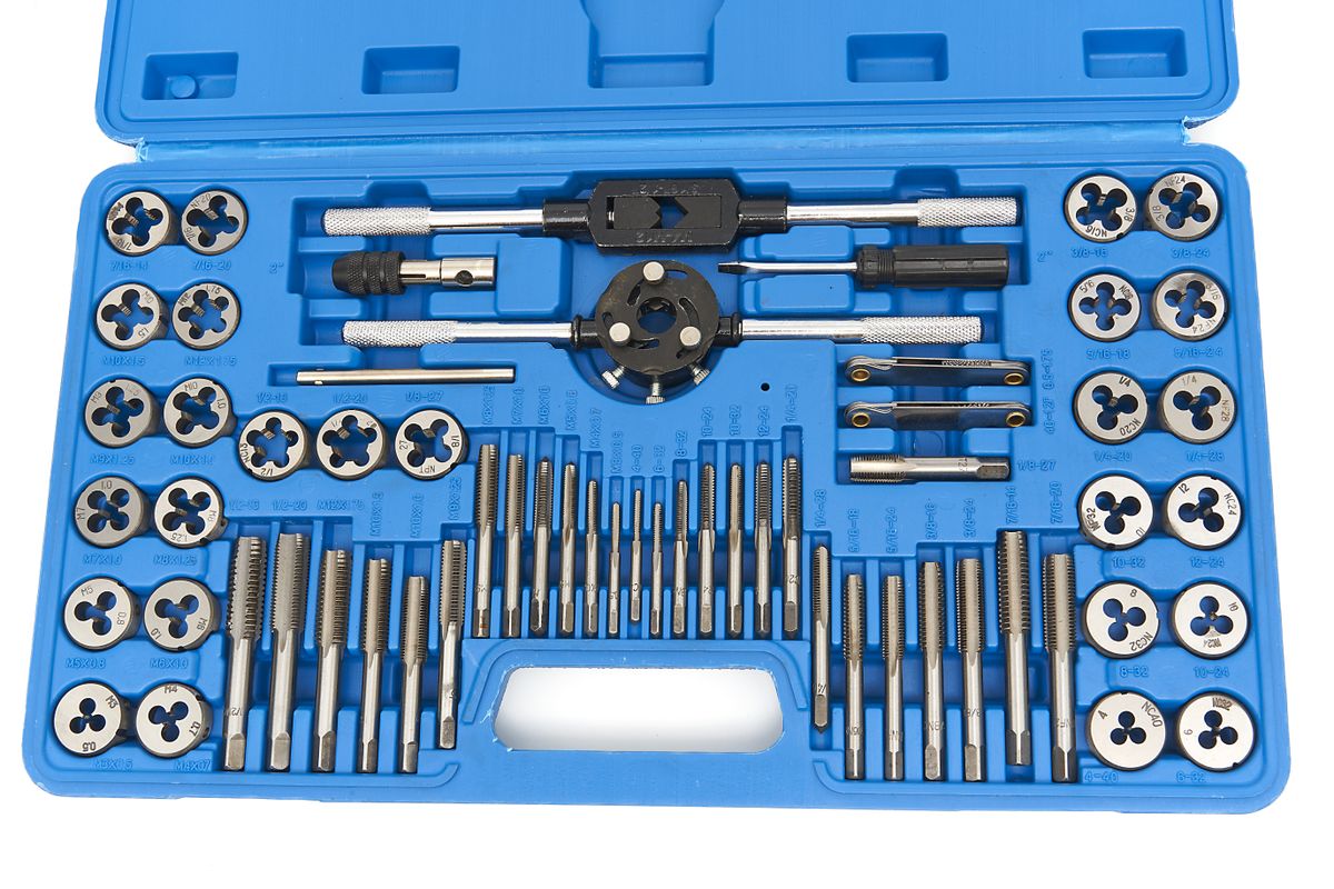 Met deze set bij de hand breng je tappen zonder problemen snel aan in een muur of ander oppervlak. De set komt in een handige opbergkoffer, die je snel en veilig opbergt in de werkplaats. Ook neem je de tap- en snijset makkelijk mee op pad. De set is zeer compleet met diverse accessoires voor het snel en veilig aanbrengen en/of verwijderen van tappen. Deze set bevat gereedschap in metrische en UNC/UNF maten.