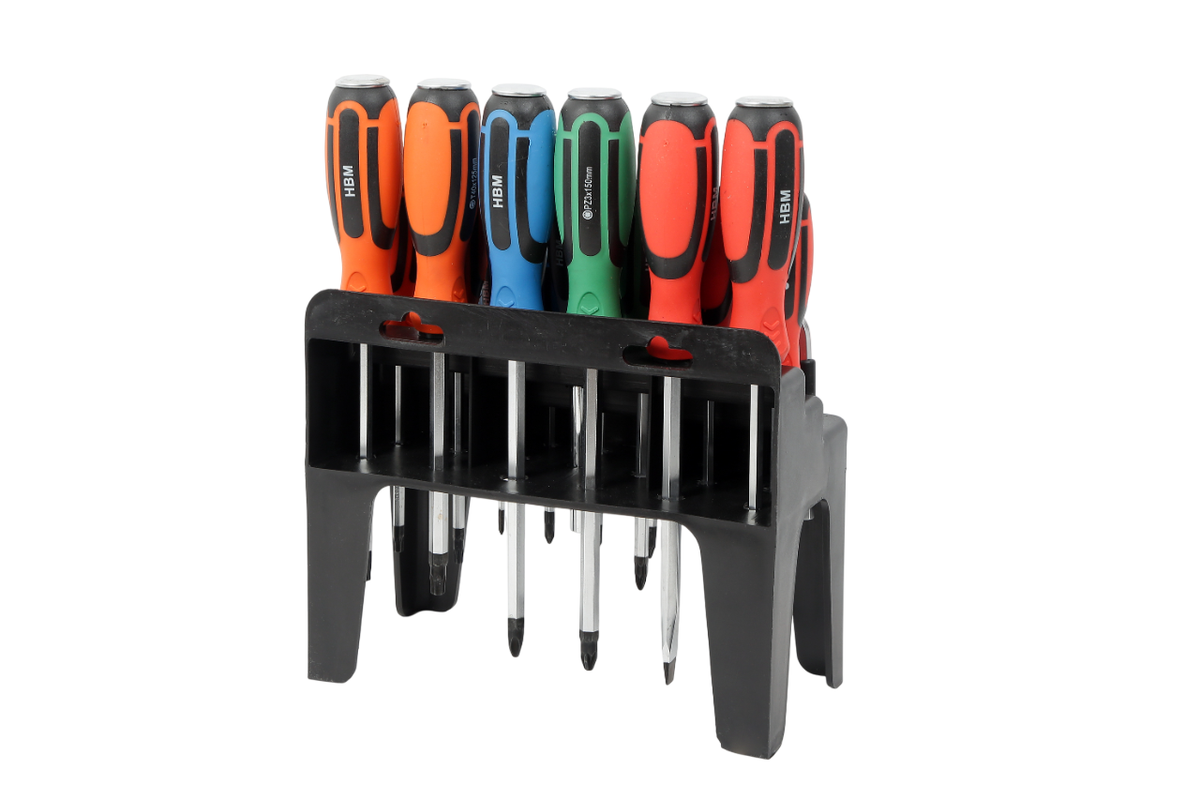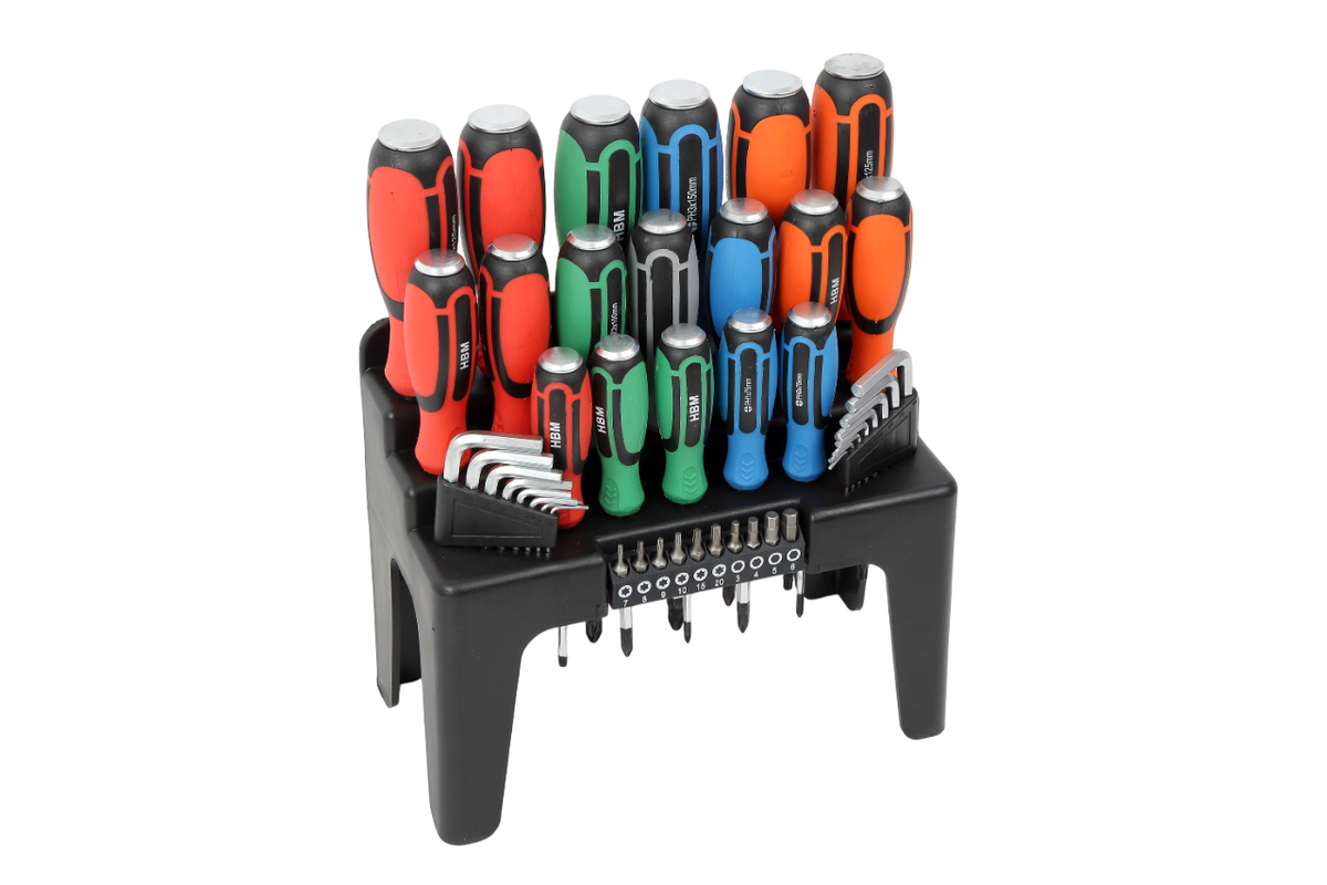 De HBM slagvaste schroevendraaierset 44-delig is een veelzijdige en complete set voor elke klus. De set bevat 17 stevige schroevendraaiers met sleuf-, PH-, PZ- en Torx-koppen in diverse maten. Ook inbegrepen zijn een 1/4″ bithouder en 10 bits, waaronder Torx- en inbusvarianten. Daarnaast krijg je 16 inbussleutels in zowel metrische als imperiale maten. Dankzij de slagvaste constructie zijn de schroevendraaiers bestand tegen zware belasting. Ideaal voor vakmensen die op zoek zijn naar betrouwbaarheid en variatie in één set. Onmisbaar op elke werkplaats.
