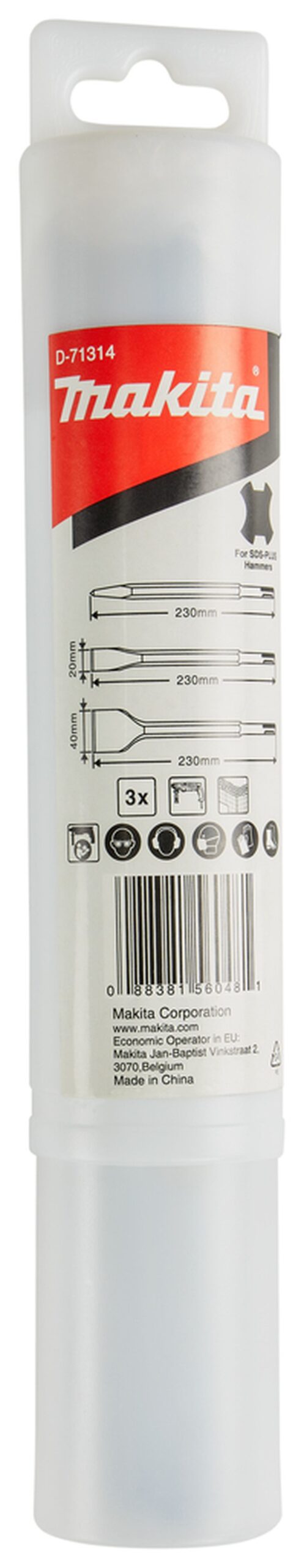 Makita 3-delig SDS plus beitel set. Geschikt om de meest voorkomende sloop en bewerkings klussen te kunnen uitvoeren.