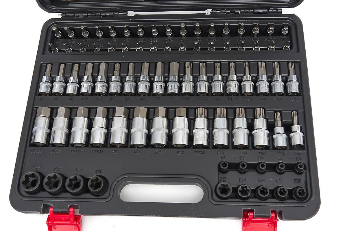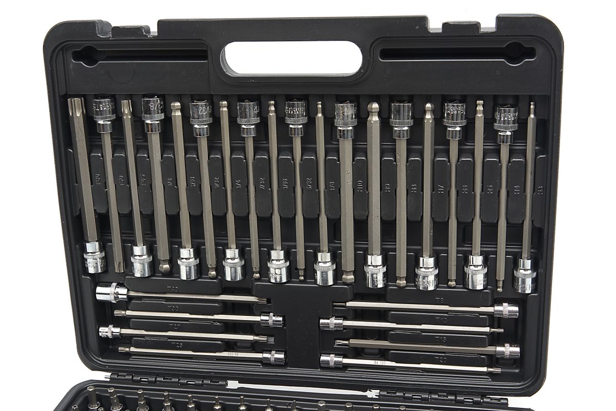 Met deze 107 delige doppenset heb je de meest gebruikte doppen altijd direct bij de hand. Geschikt voor de beginnende professional en ervaren doe-het-zelver. De set wordt geleverd met diverse maten inbus en torx bits, zowel in Engelse als Metrische maten. Daarbij worden de torx in drie verschillende uitvoeringen meegeleverd. E-torx, sabotagebestendig en lange torx. De hele set wordt geleverd in een handige koffer waarin elk onderdeel een eigen plek heeft. Daardoor is alles snel te vinden en makkelijk mee te nemen of op te bergen.