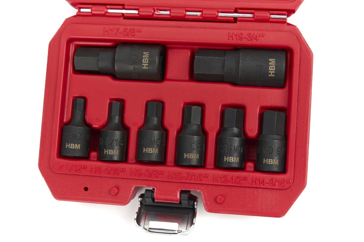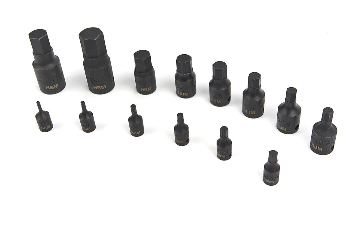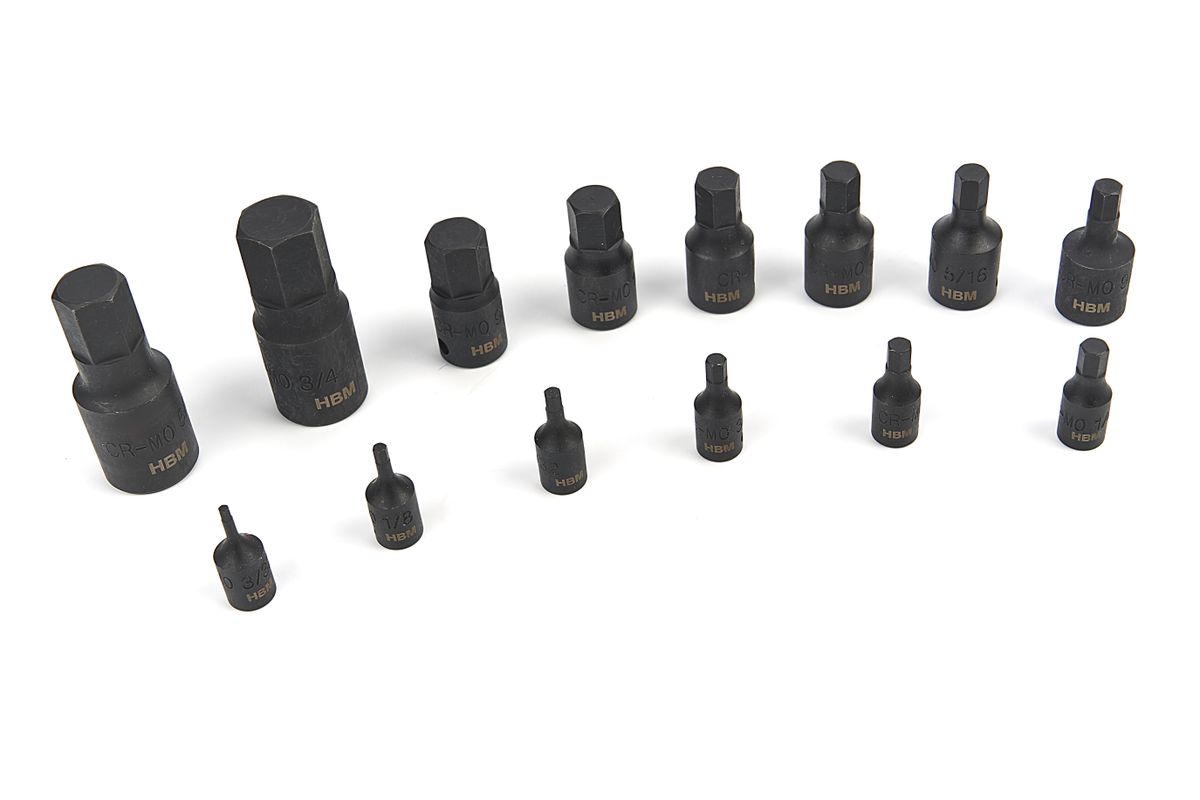 Een echte aanvulling voor elke sleutelaar zowel hobbymatig als professioneel. Met deze inbus krachtdoppenset kunt u inbusbouten losmaken met luchtgereedschap of slagmoersleutels. De set is verpakt in een kunststof opbergbox zodat u de set altijd overzichtelijk en compleet heeft. De dopsleutels zijn gefabriceerd uit een geheel van chroom-molybdeen. Deze uiterst slagvastecombinatie zorgt voor een lange levensduur en geen vervorming. Inhoud: 1 x H2,5 / 3/32″ met 1/4″ opname. 1 x H3 / 1/8″ met 1/4″ opname. 1 x H4 / 5/32″ met 1/4″ opname. 1 x H5 / 3/16″ met 1/4″ opname. 1 x H5,5 / 7/32″ met 1/4″ opname. 1 x H6 / 1/4″ met 1/4″ opname. 1 x H7 / 9/32″ met 3/8″ opname. 1 x H8 / 5/16″ met 3/8″ opname. 1 x H9 / 3/8″ met 3/8″ opname. 1 x H10 / 7/16″ met 3/8″ opname. 1 x H12 / 1/2″ met 3/8″ opname. 1 x H14 / 9/16″ met 3/8″ opname. 1 x H17 / 5/8″ met 1/2″ opname. 1 x H19 / 3/4″ met 1/2″ opname.
