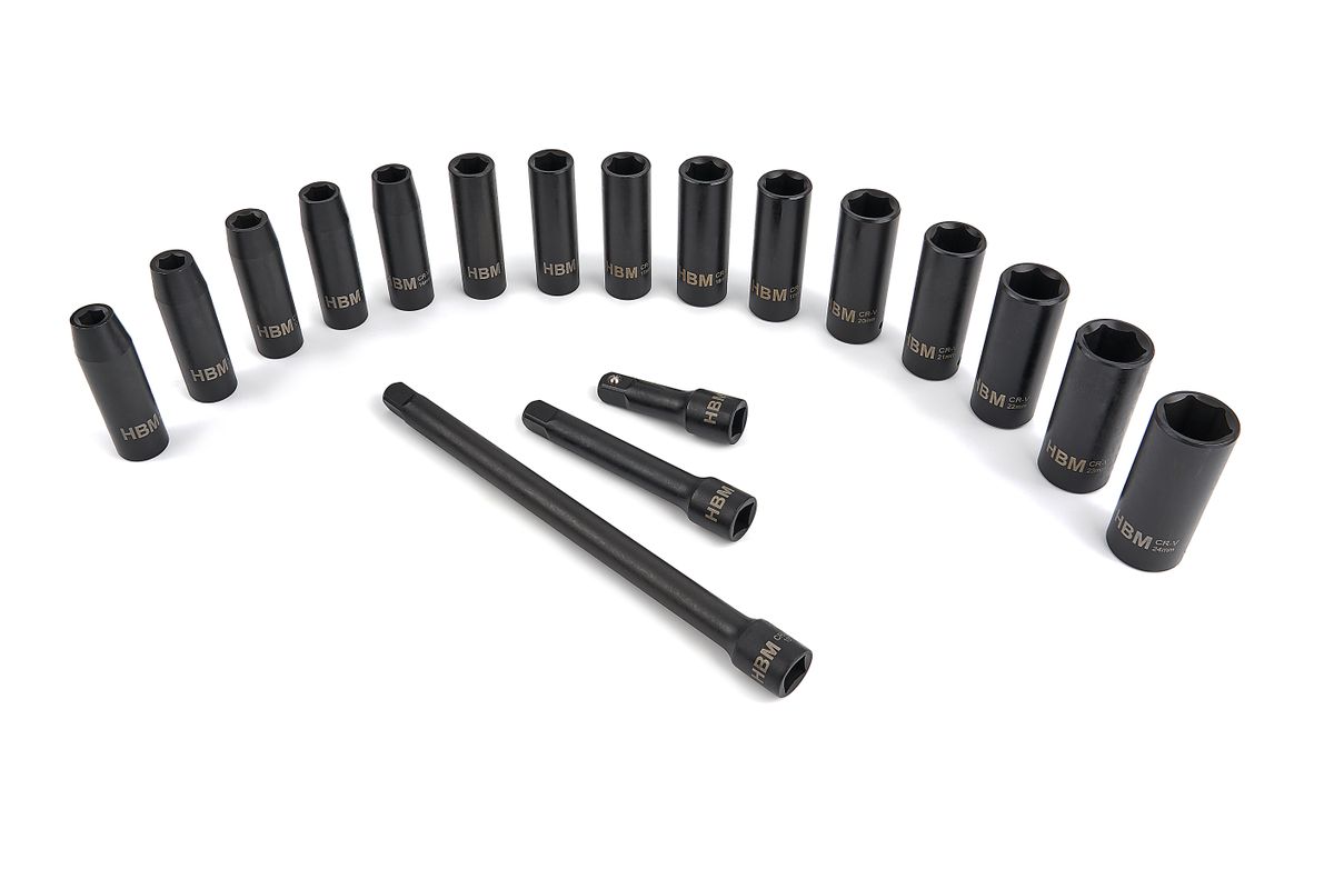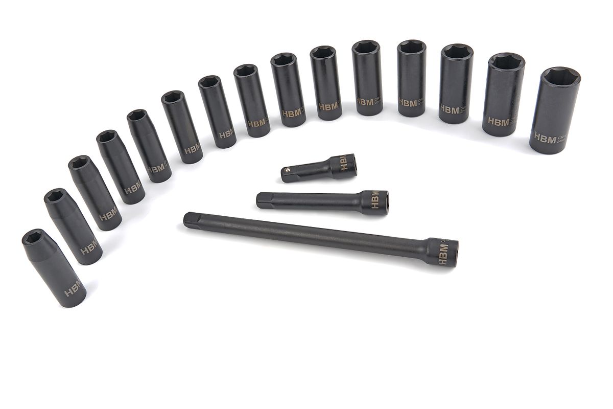Deze complete set krachtdoppen is een must-have voor verschillende specialisten en vakmannen. De doppen zitten in een stevige kunststof koffer zodat je alles gemakkelijk en veilig meeneemt. Daarbij bestaan alle doppen uit hoogwaardig metaal. Over de HBM Professionele 18 Delige 1/2 inch Krachtdoppenset met Verlengstukken In de doppen zit een gat aan de zijkant, zodat je ze gemakkelijk bevestigt aan het gereedschap dat je gebruikt. Daarbij zitten in de bodem van de koffer uitsparingen, waardoor alle krachtdoppen veilig opgeborgen zijn en op hu plaats blijven liggen. Zo vind je sneller het nodige model én gaan ze langer mee.