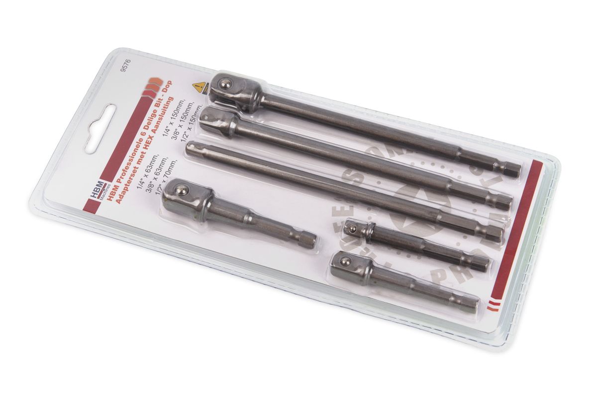 HBM Professionele 6 Delige Bit – Dop Adapterset met HEX Aansluiting