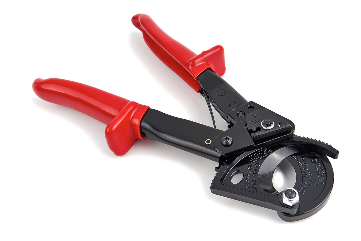 Door het systeem van ratel/mes kan met minimale inspanning draad met grote diameter worden geknipt. Praktisch in beperkte ruimte. Antislip bekleding op de handvatten met handbescherming.